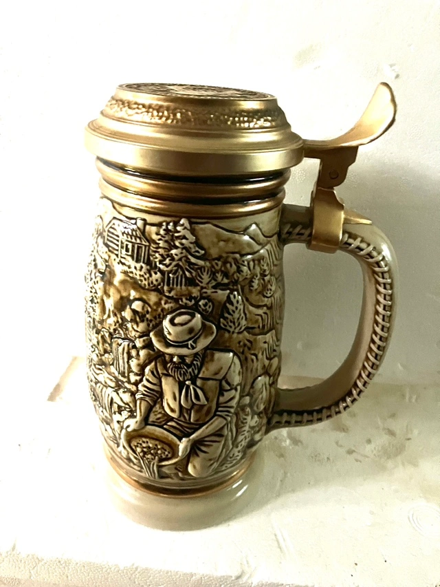 1987 Gold Rush Beer Stein with Lid Ceramak Ston
