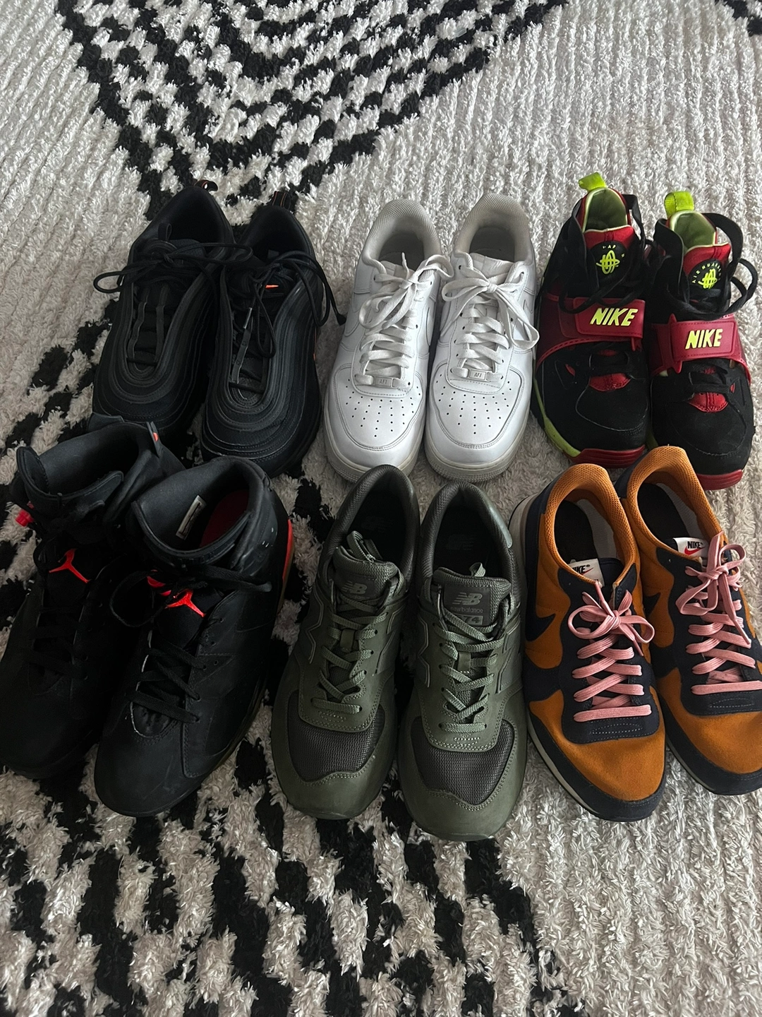 1000+These are men's size 10/10.5. The sneakers/trainers are in very good condition and have been worn a handful of times. They have some minor scuffs and scratches on the soles and uppers. ❌AIR MAX SOLD❌ ❌NEW BALANCE SOLD❌ ❌ BLACK JORDANS SOLD ❌ Discount considered if bundled, otherwise price is firm. DM me (serious buyers only) Tags: Airmax 97, Nike, Men’s sneakers 10, green New balance, black sneakers, back to school, moving, closet clear out, declutter, air force ones, Jordans Pick up Yorkdale area