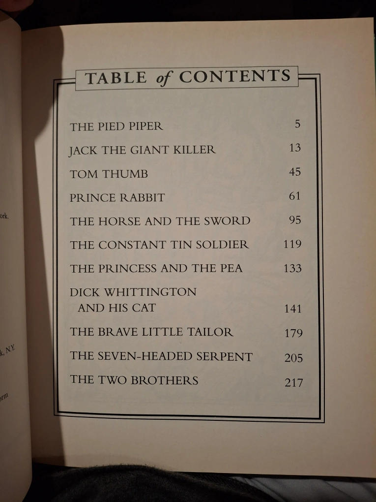 671A collection of illustrated classic fairy tales, including "The Pied Piper", "The Princess and the Pea", and "Tom Thumb".