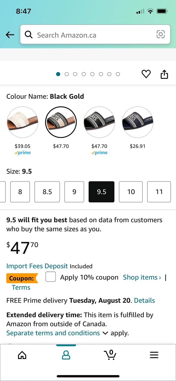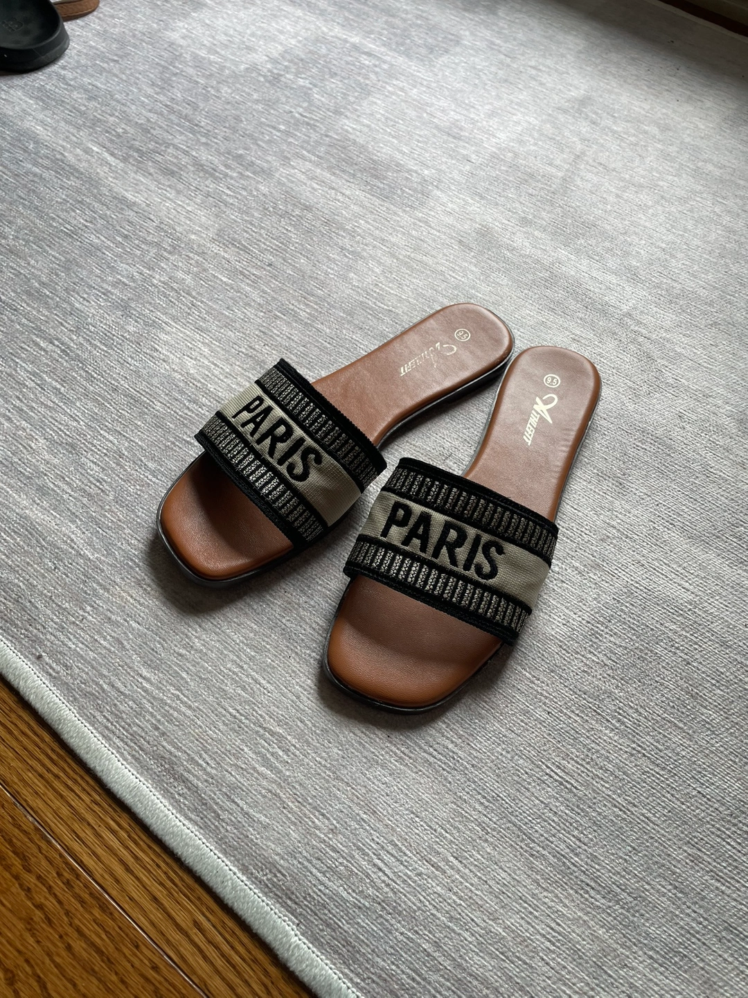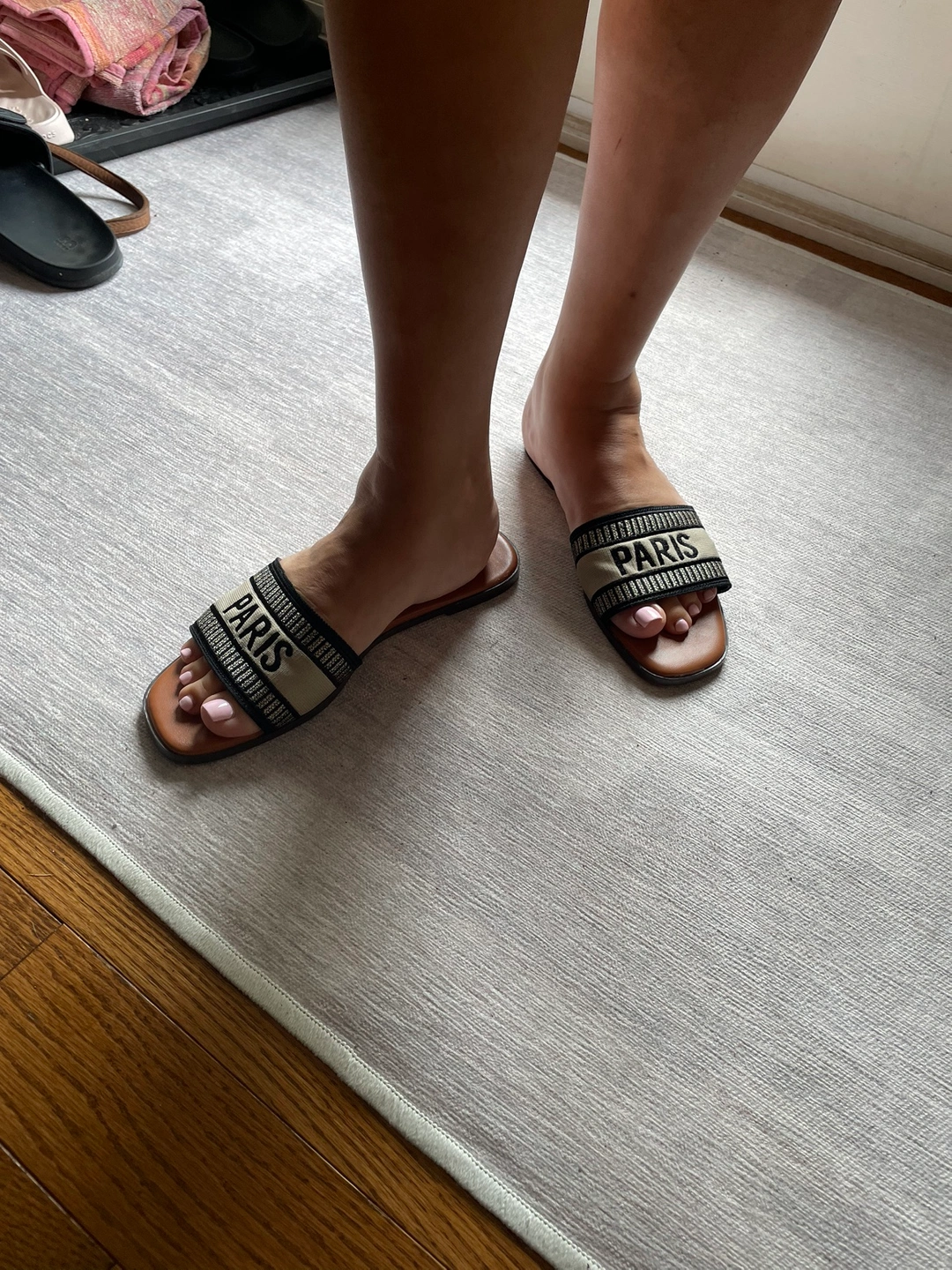 These are gold and black slides very comfortable very stylish size 9 1/2 . Too big for me:( I have had so many compliments on them. Paid $47