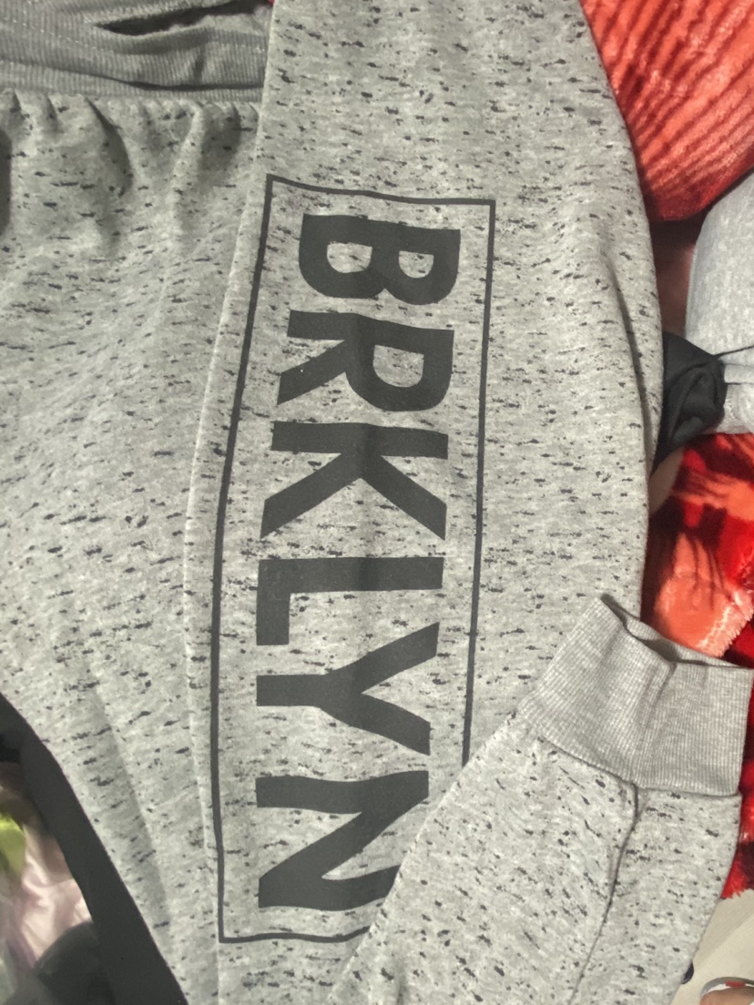 85Grey sweatpants with black drawstring and "Brooklyn" printed on the left leg, perfect for casual outfits. Explore a wide range of stylish women's clothing. With every purchase, you’ll receive one complimentary item (from a designated list) as a thank you for supporting our sustainable initiative.