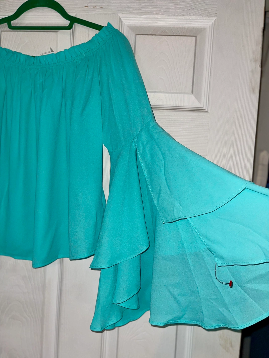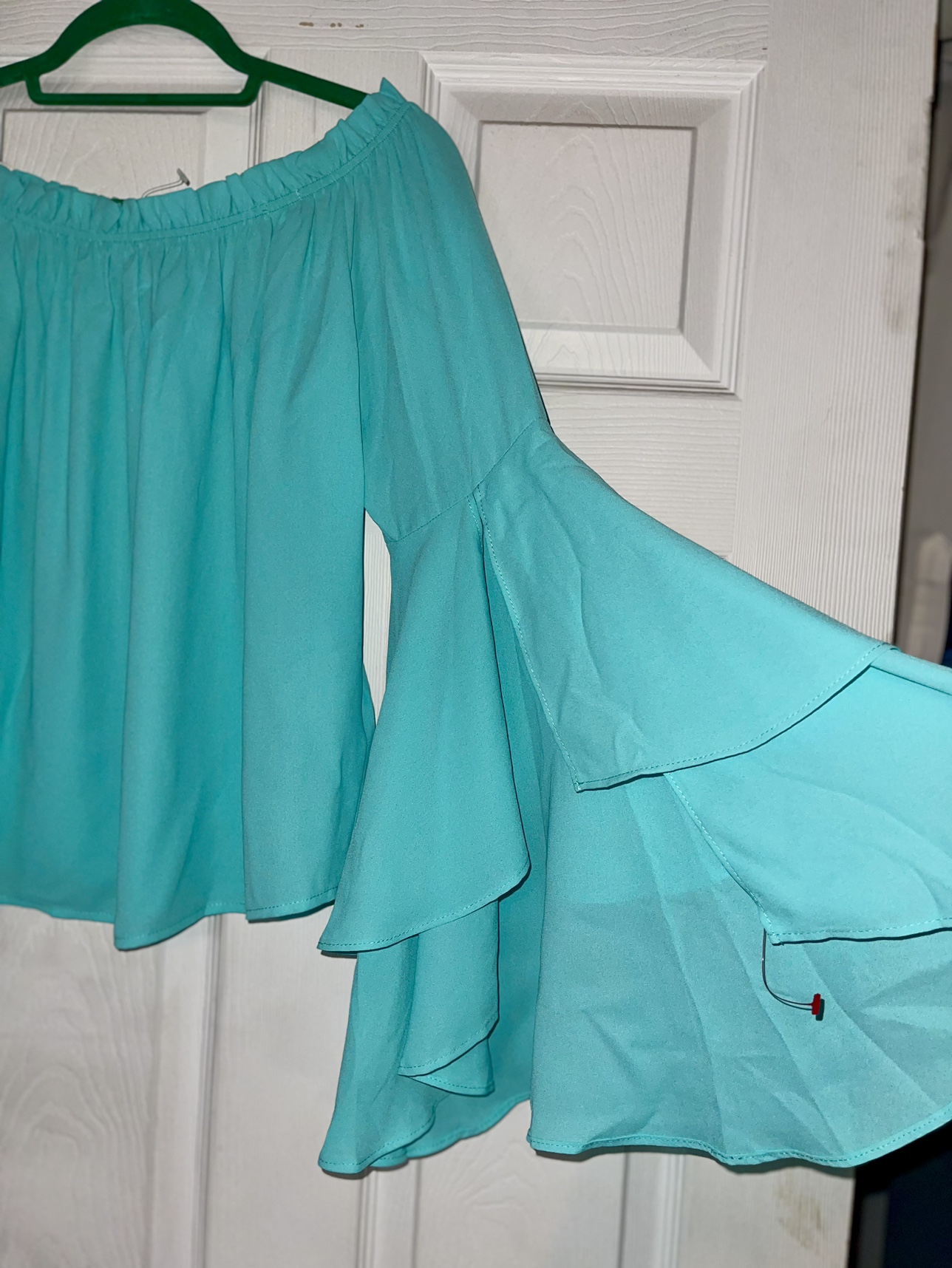 Gorgeous off the shoulder blouse with bell sleeves that cascade must see in person!