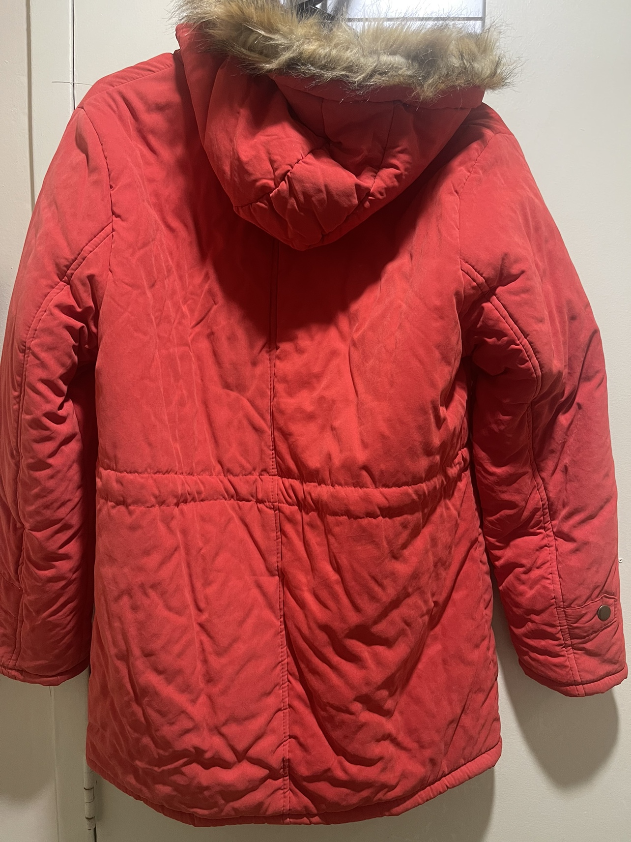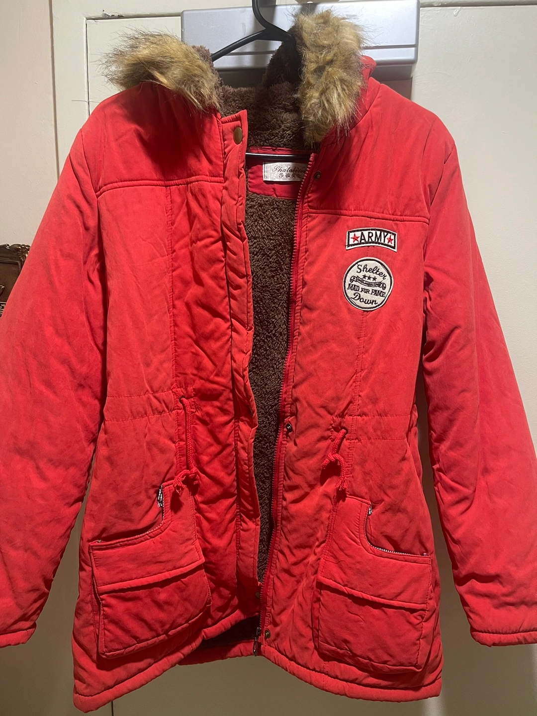 It’s a xxl but I believe it can fit medium as well. Got as a gift. Never got to wear. Has a nice wool inside. That should keep you warm. Check other listings.