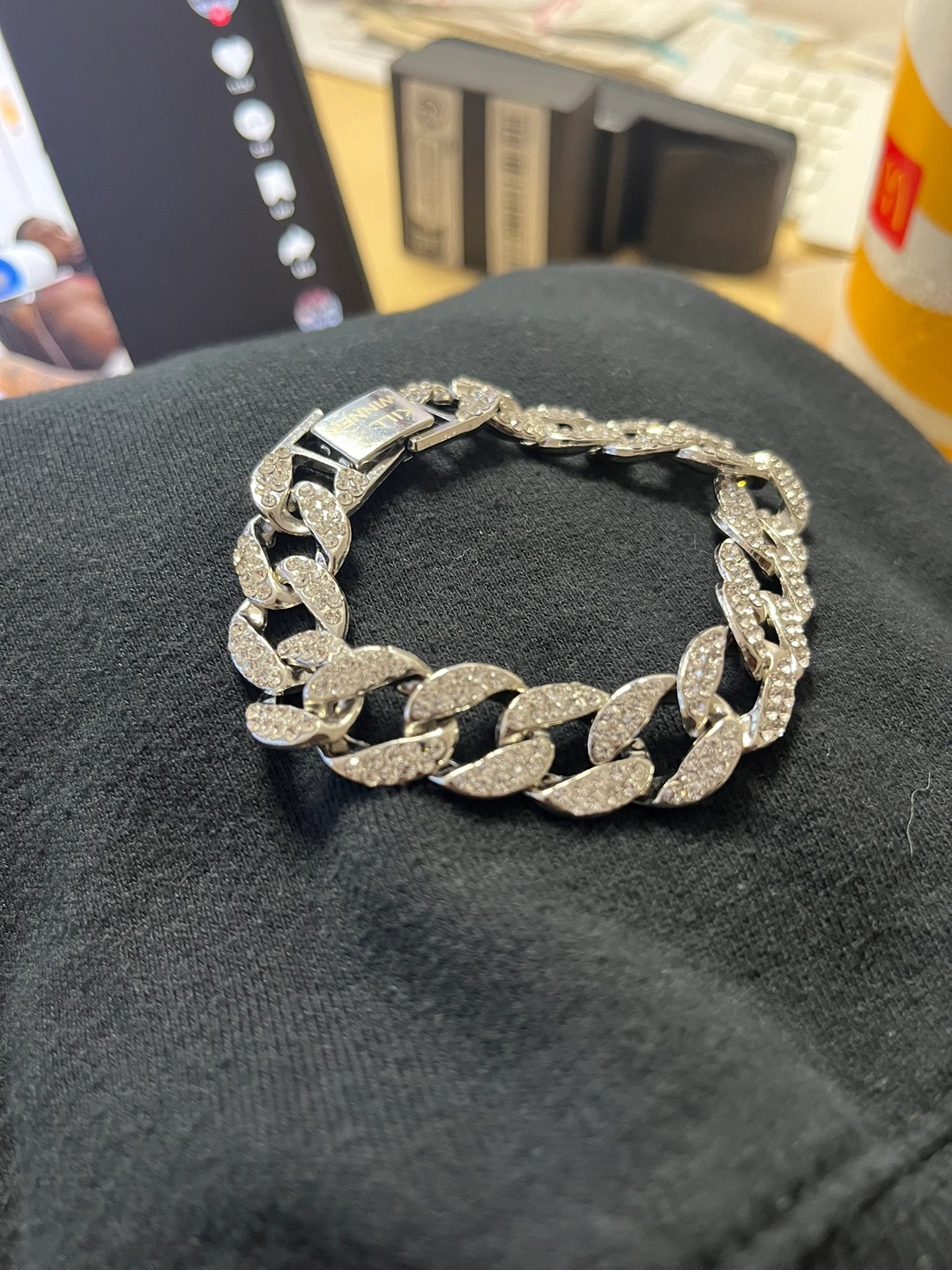 Silver Cuban Link Bracelet with Cubic Zirconia Stones. New in package. Giftable