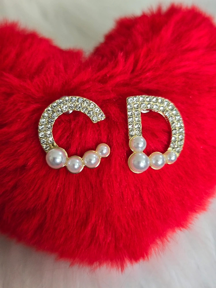 Gold CD Earrings with Pearls *new