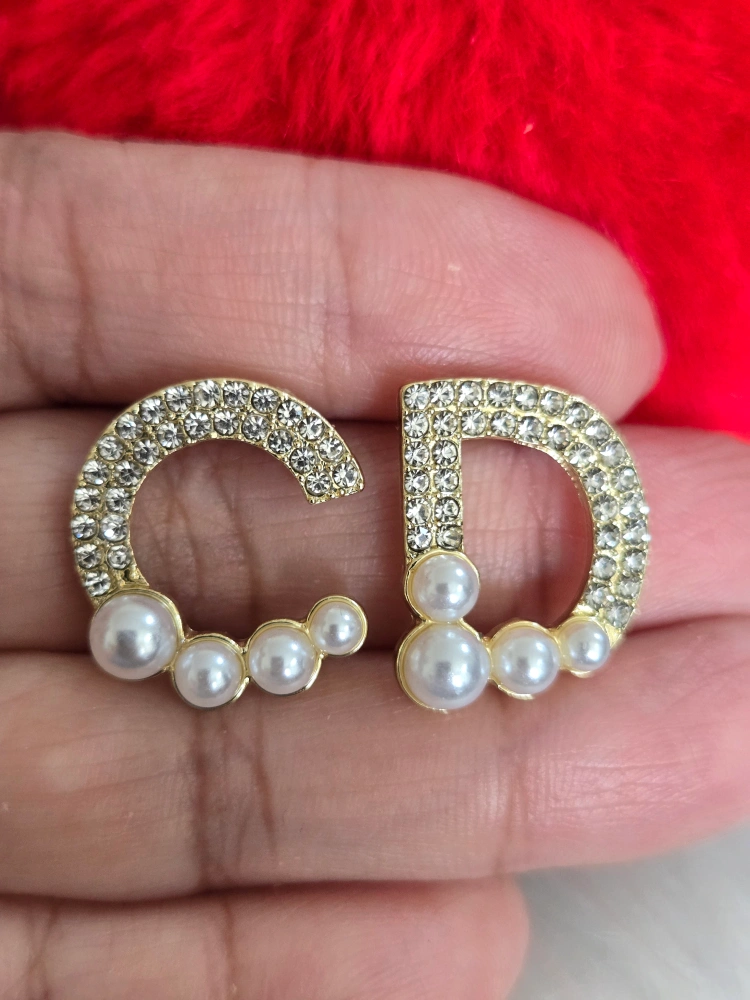 Gold CD Earrings with Pearls *new