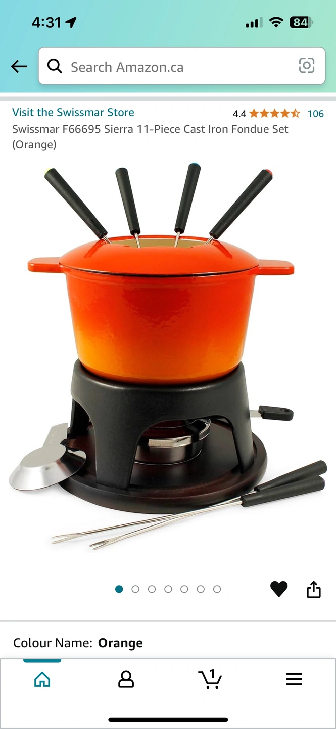 It includes the fondue pot, stand, fire gel, and six fondue forks. It is in good condition and has been used a few times.