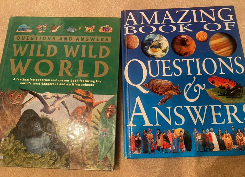 Two hardcover children's books featuring questions and answers about the natural world.