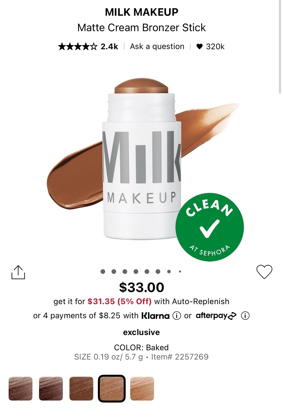 Creamy matte bronzer stick for face and body. Provides an immediate hydrating warmth. New, never used. Shade Baked.
