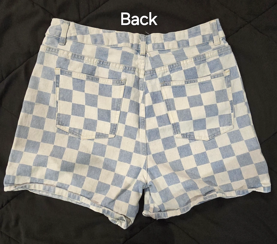 282Two-tone Checkered Refuge Denim Mom Shorts! Women's Size 9 Excellent pair of unique shorts! Perfect for summer or vacation! Please take a look at my listing for more items! LOTS brand NEW! 😁