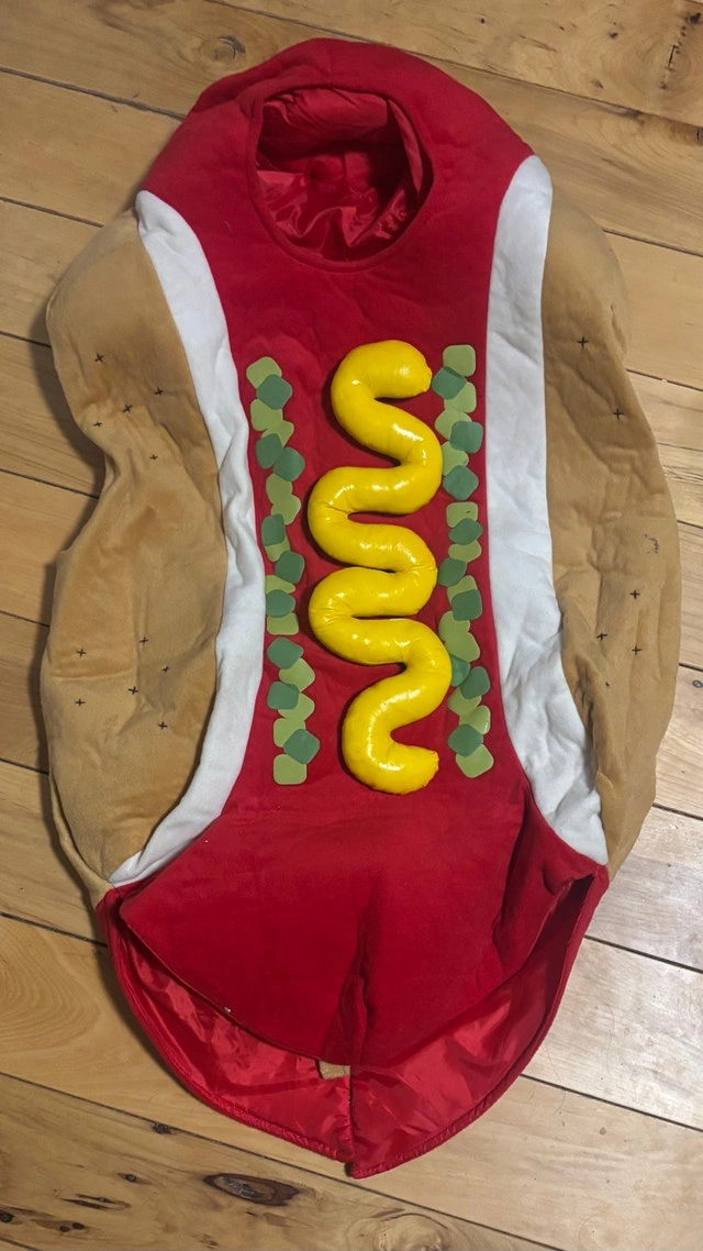 A banana costume and a hotdog costume. Both are in good condition. Adult size. If you're seeing this ad, the costumes are available!