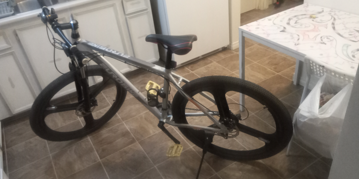92Grey and black mountain bike with black wheels. new was regularly worth 600 new so it'd a great deal .