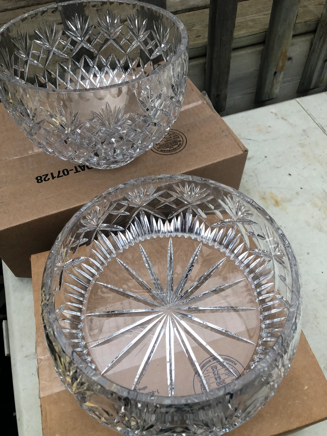 Two vintage crystal serving bowls with a cut pattern. The bowls are in good condition. I also have a punch bowl set that is 40 years old never used $20 for all