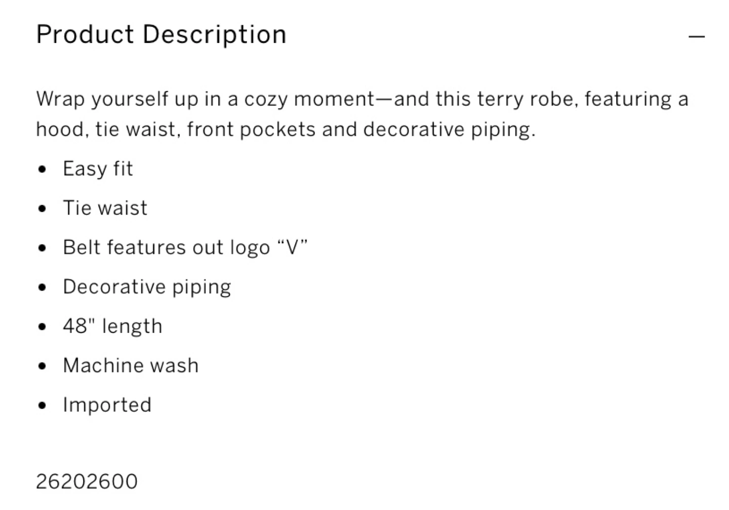 VS Hooded Terry Robe