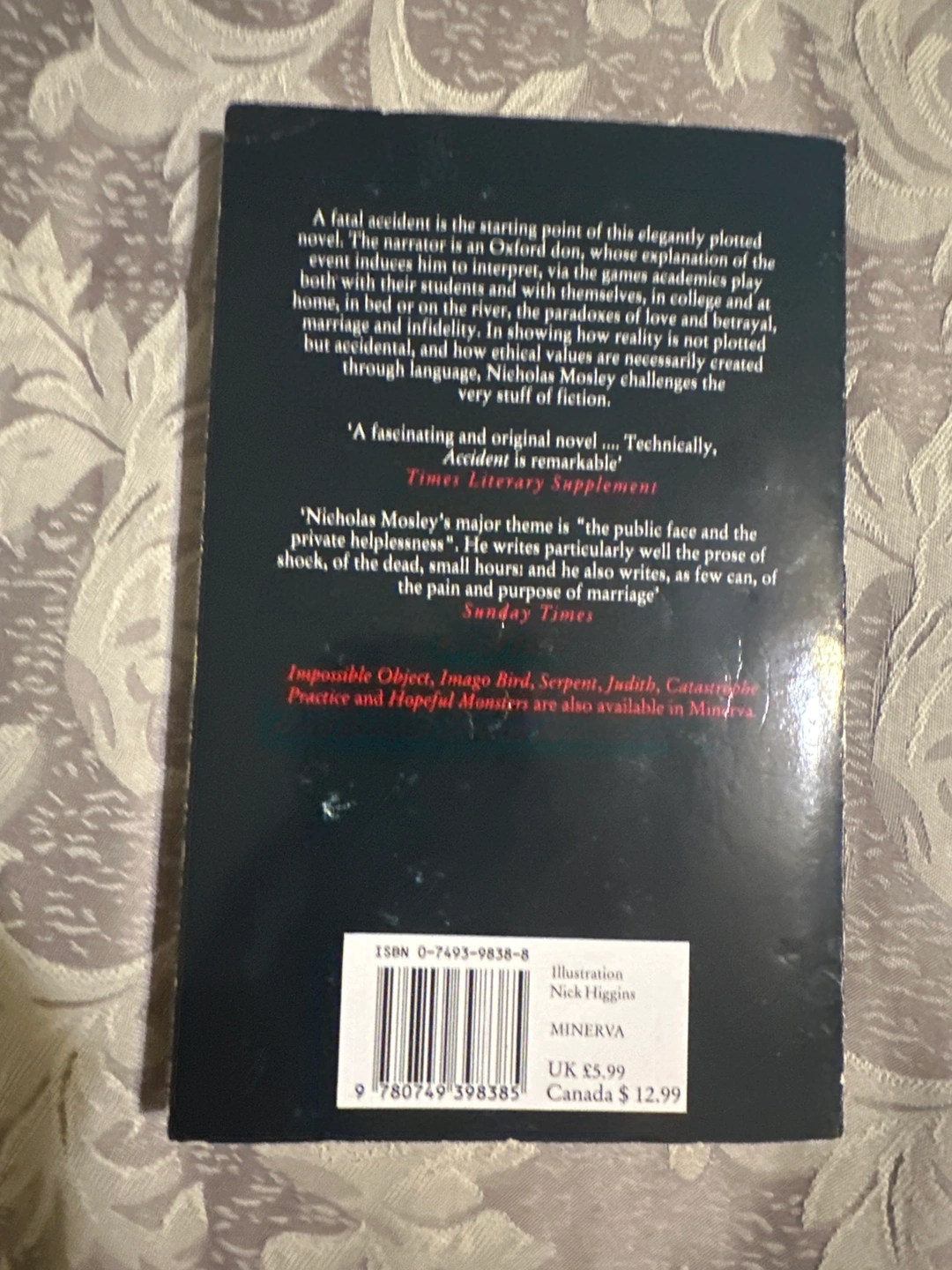 A novel by Nicholas Mosley, published by Minerva. "A most brilliant and singular piece of work". Harold Pinter.