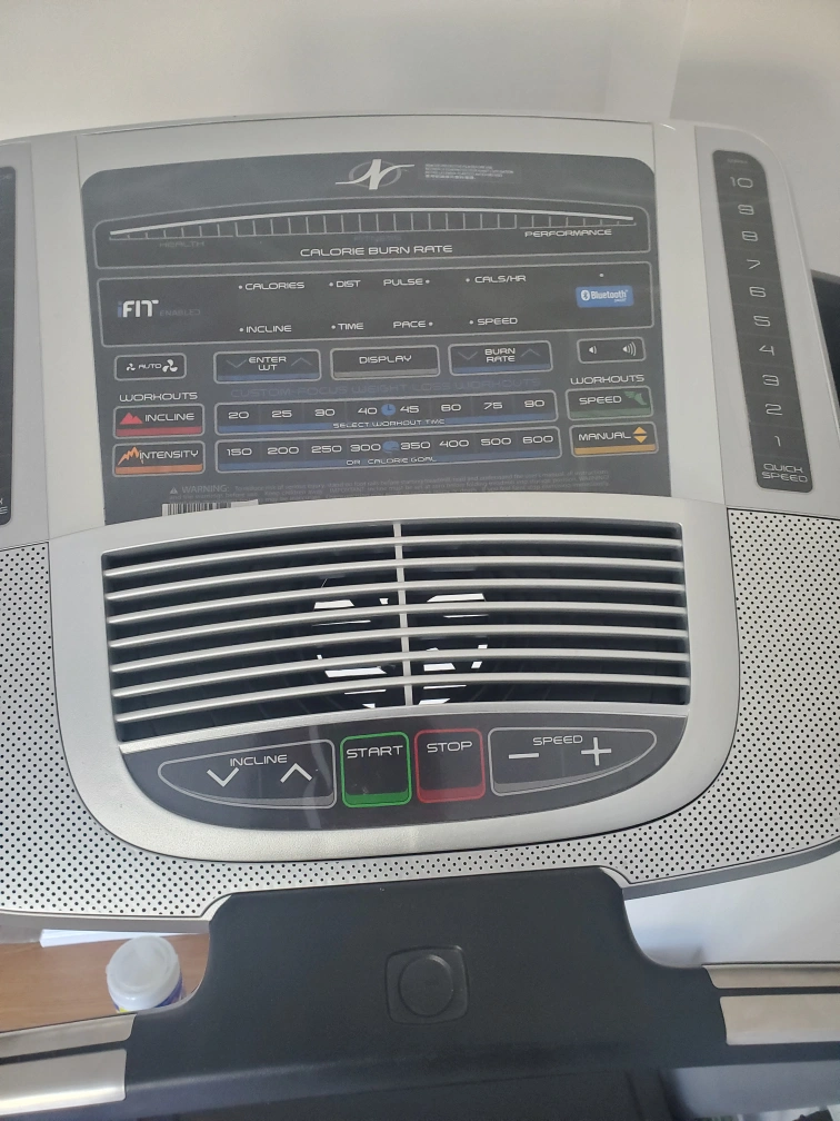 NordicTrack C700 Treadmill. (Used like new) Orignal price $2699 https://www.canadiantire.ca/en/pdp/nordictrack-c700-folding-treadmill-ifit-enabled-0847999p.html Specs: Spacesaver® Design With Easylift Assist™ lets you pack up and store your treadmill away easily 2.75 HP motor provides smooth and consistent power for an uninterrupted running experience Walk, jog or sprint with this treadmill from 0 - 10 mph (0 - 16 kph) speed. Change your intensity with the 0 - 10% incline. Heart rate monitor helps you keep your heart rate in the target zone for an effective workout Tread Belt Size: 20\" x 55\" (50.8 x 139.7 cm) Dimensions: 68\" L x 36\" W x 73\" H (173 x 91 x 185 cm); Weight Capacity: 300 lbs (136 kg) Note: Access iFit® account from computer, tablet, or smartphone. Requires membership, sold separately. Nordictrack Equipment can be used without IFIT. None of the equipment’s basic functionality is compromised and users are able to run workouts & control all functions.This is a NordicTrack C 700 treadmill. It has a built-in fan, a tablet holder, a water bottle holder, and a built-in speaker system. The treadmill folds up for easy storage.