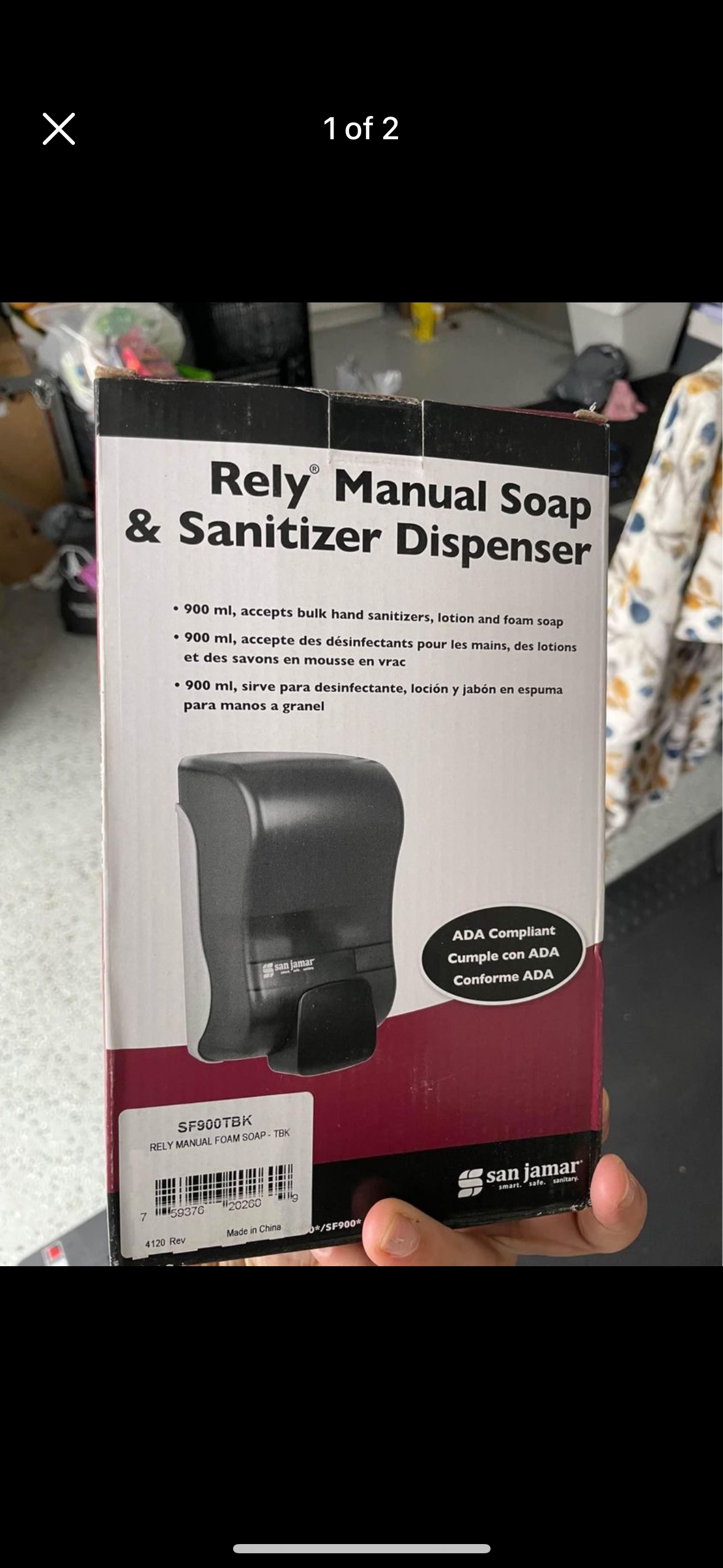 Buy & SellSan Jamar Rely Manual Soap & Sanitizer DispenserSan Jamar Rely Manual Soap & Sanitizer Dispenser$38This is a brand new San Jamar soap and sanitizer dispenser. It comes in a box and is ready to use.ConditionNew0 chats·0 favorites·8 viewsSELLERDollyRocky Point Crescent181 reviewWHERE TO MEETCheck Location
