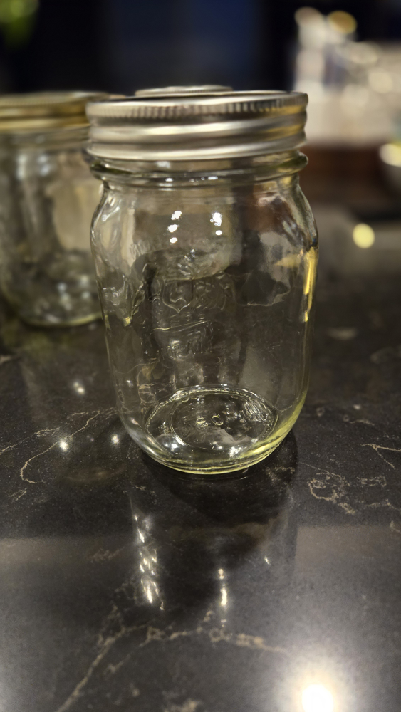 Mason Jars with lids, selling them $2/jar or all of them for $18.