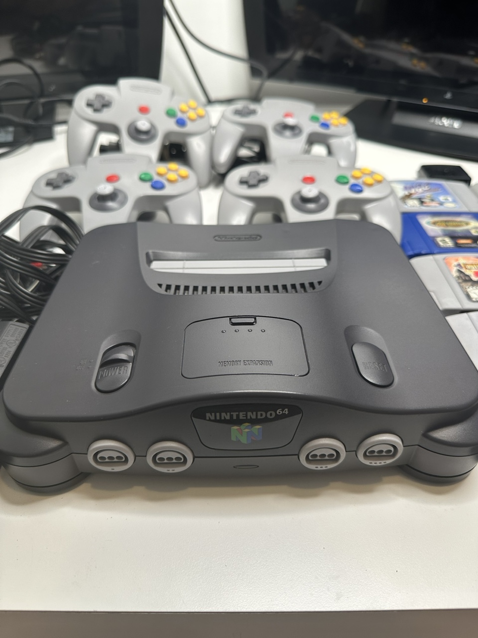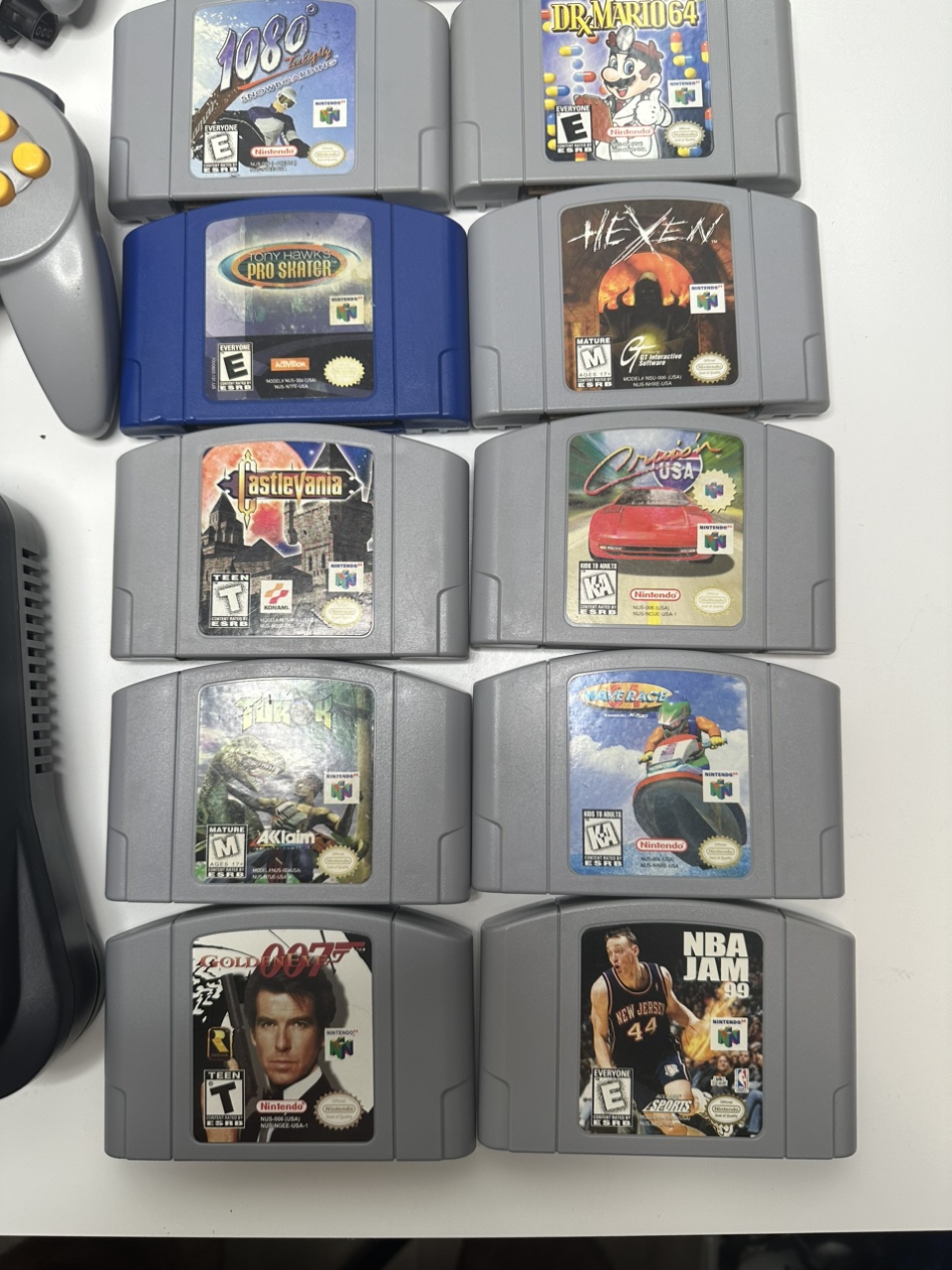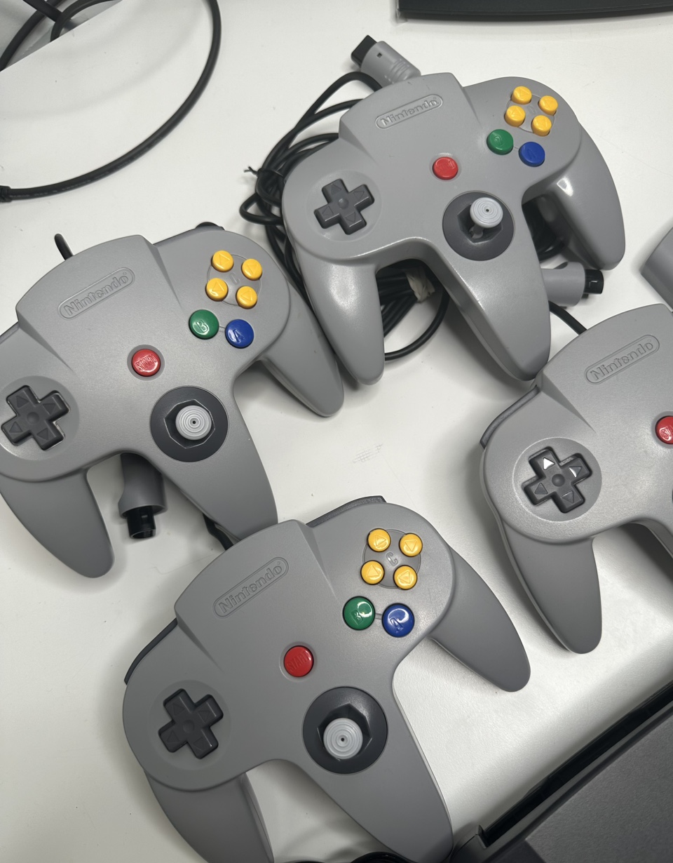 90Nintendo 64 - in perfect condition. Everything tested and works.✅ The bundle includes: Nintendo 64 console 🚀 four controllers 🎮🎮🎮🎮 Nintendo 64 Jumper Pak🔥 power adapter, AV cable🔌 Also comes with 10 games: 1080° Snowboarding, Dr. Mario 64, Hexen, Castlevania, Cruis'n USA, Jet Force Gemini, GoldenEye 007, NBA Jam 99.
