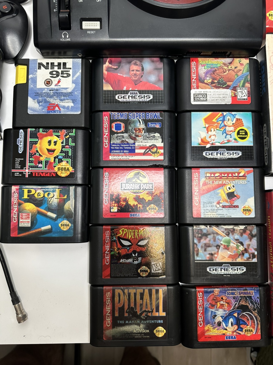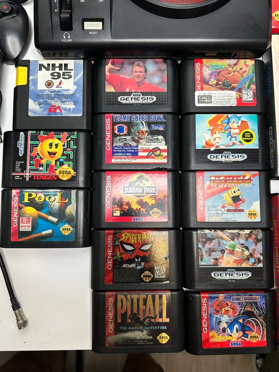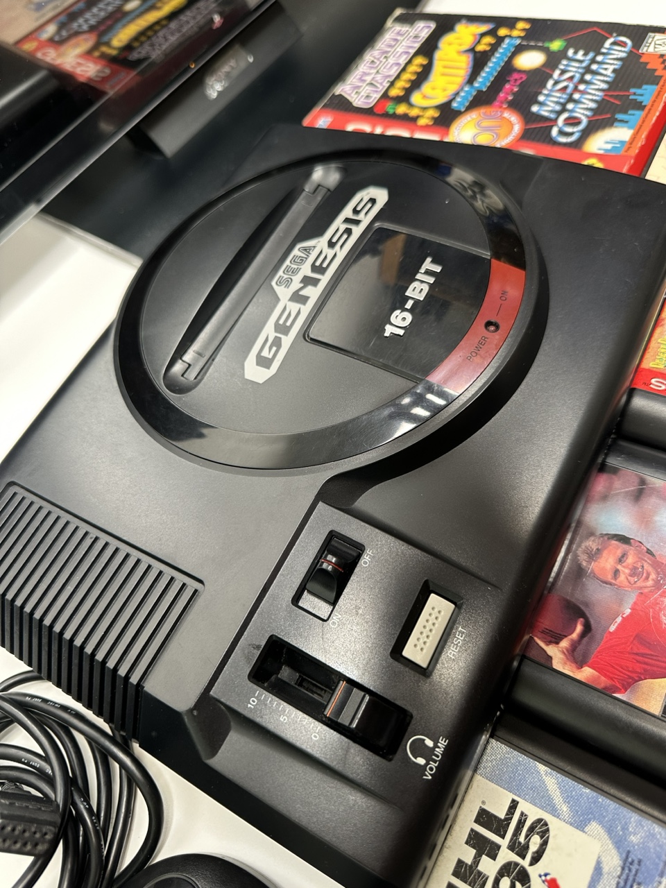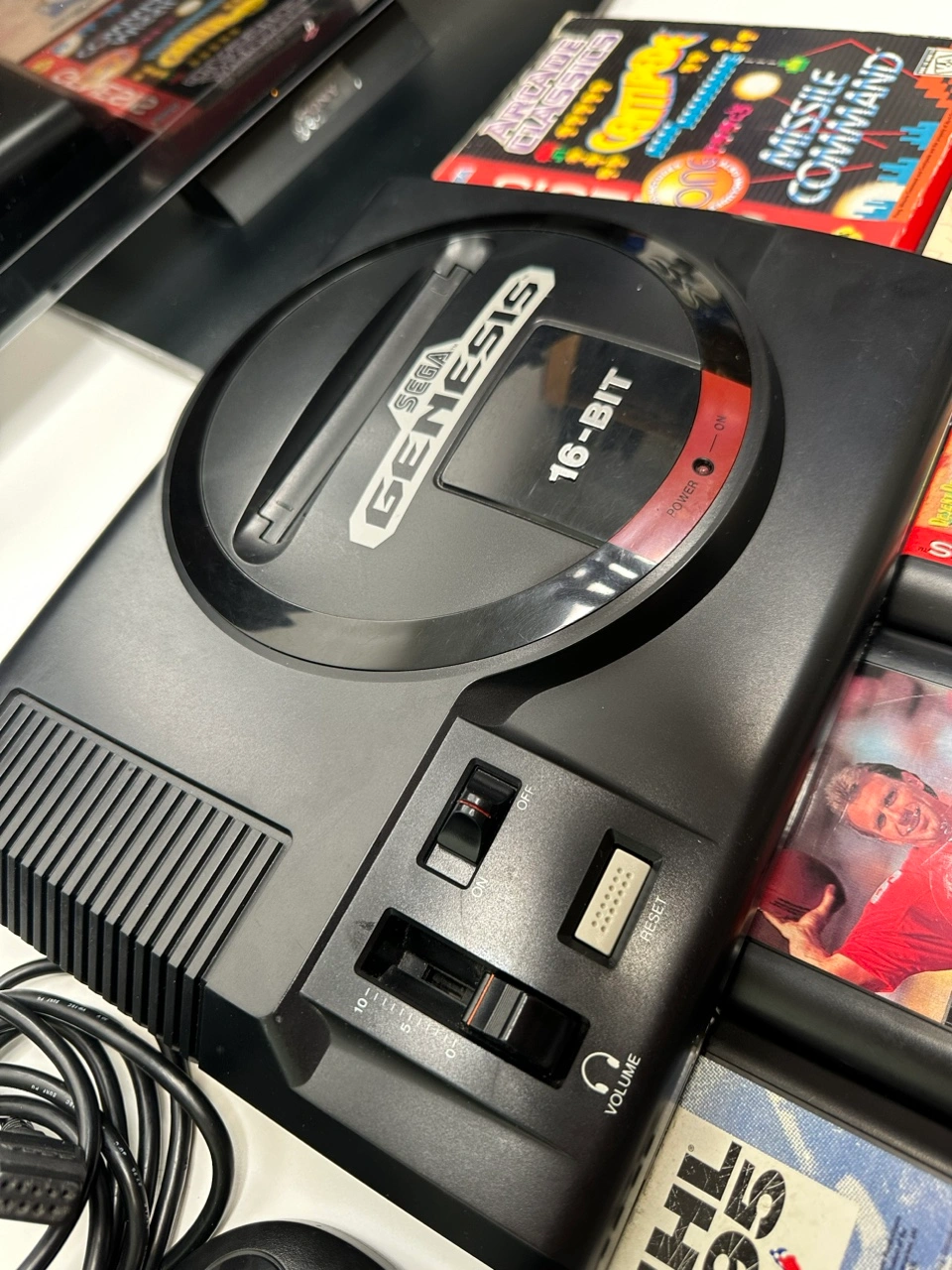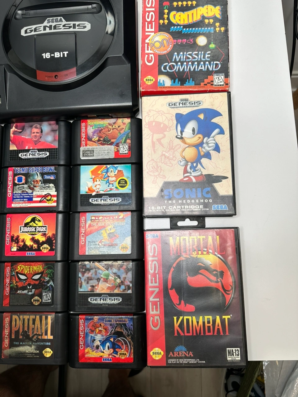 90Sega Genesis - in mint condition. Works great. This bundle includes: 🚀Sega Genesis console 🎮🎮2 authentic controllers 🔌 1 power adapter 👾👾16 games. Doesn’t comes with AV cable