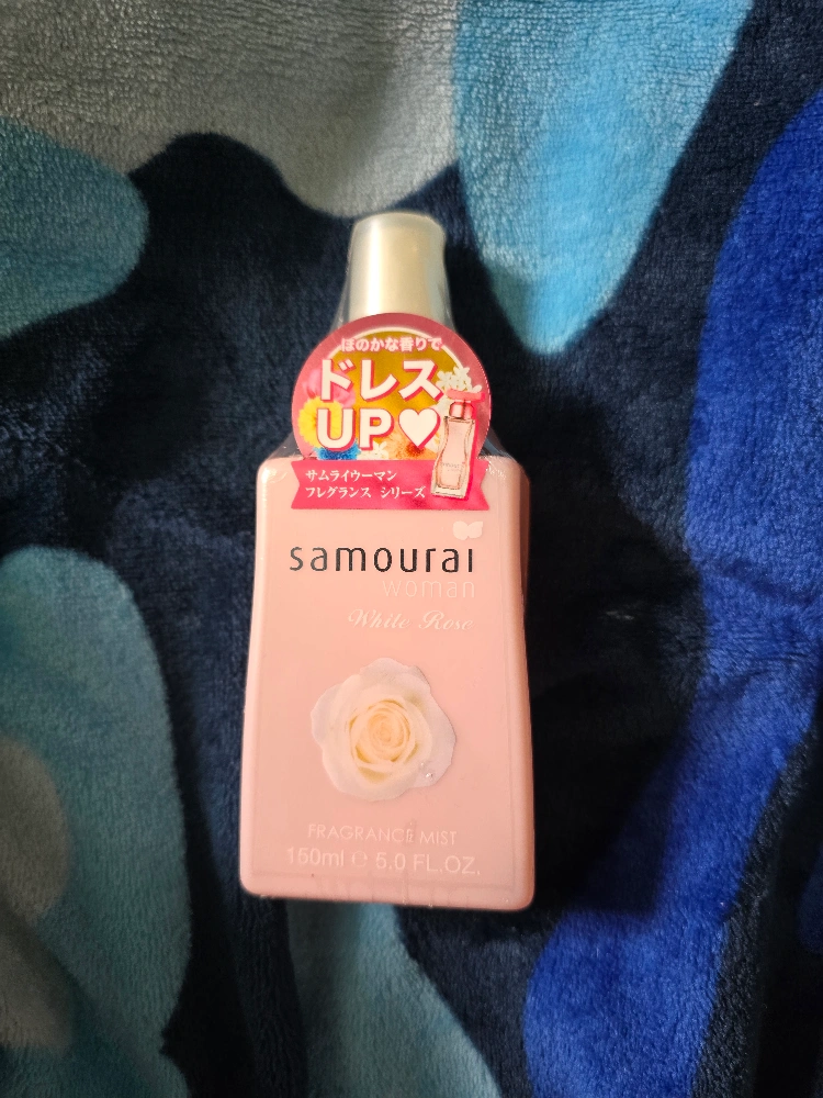 A bottle of Samourai Woman White Rose Fragrance Mist. 150 mL.