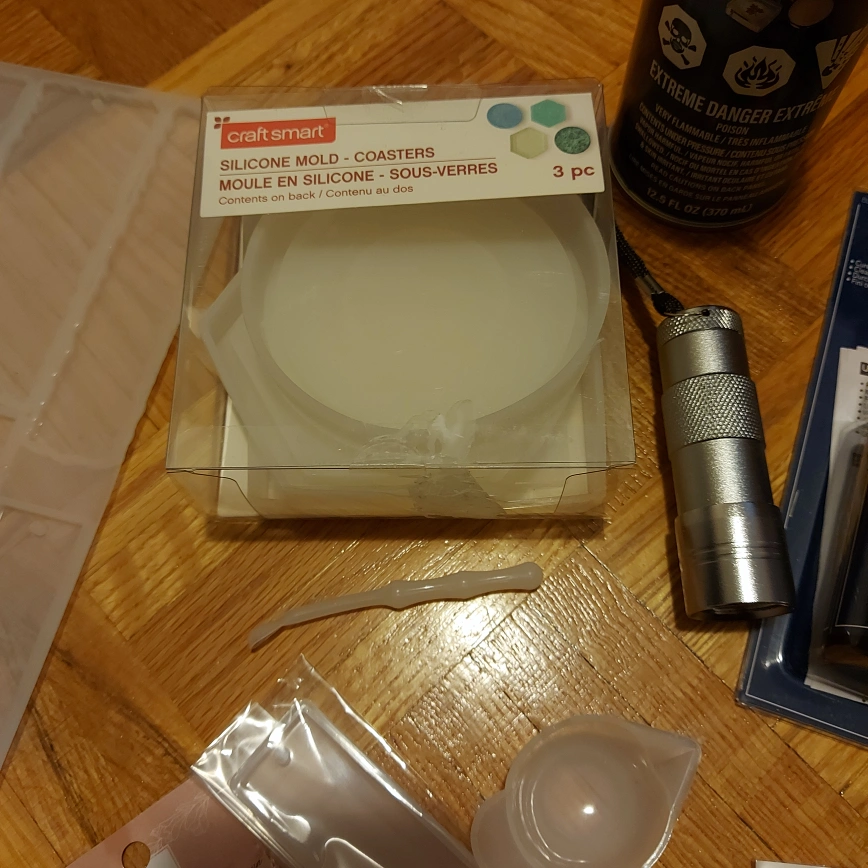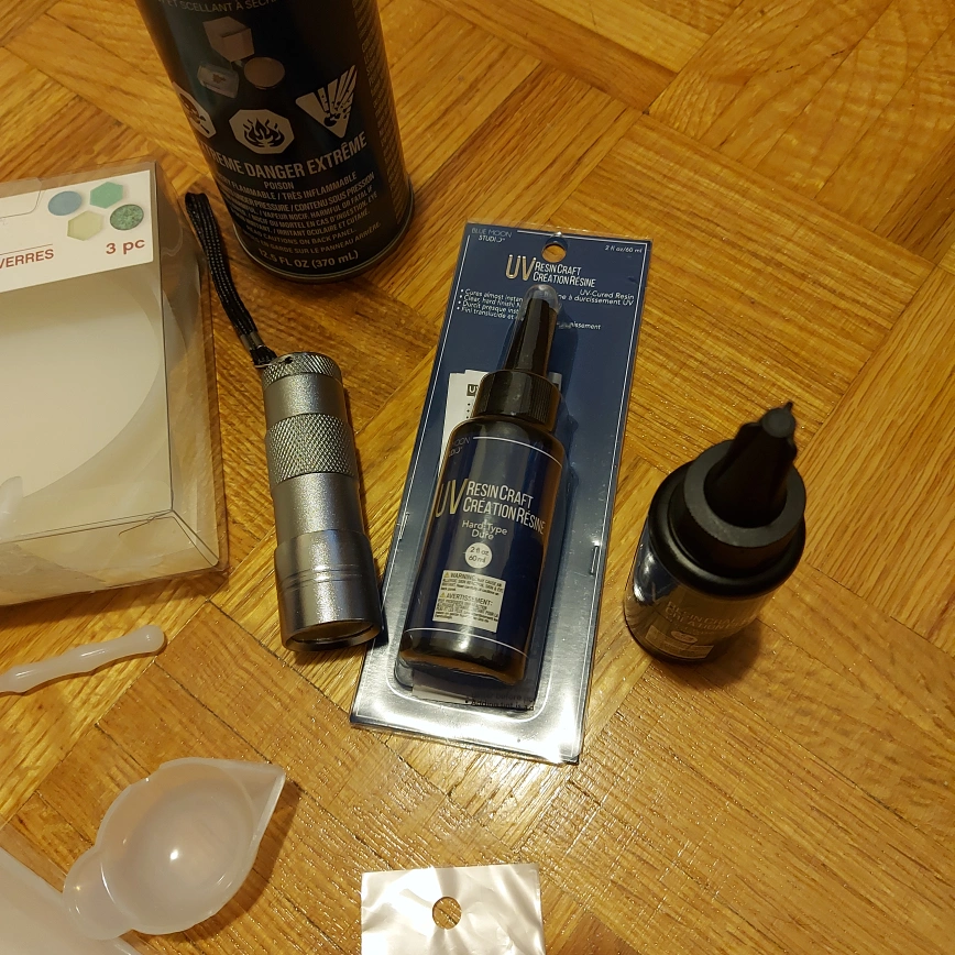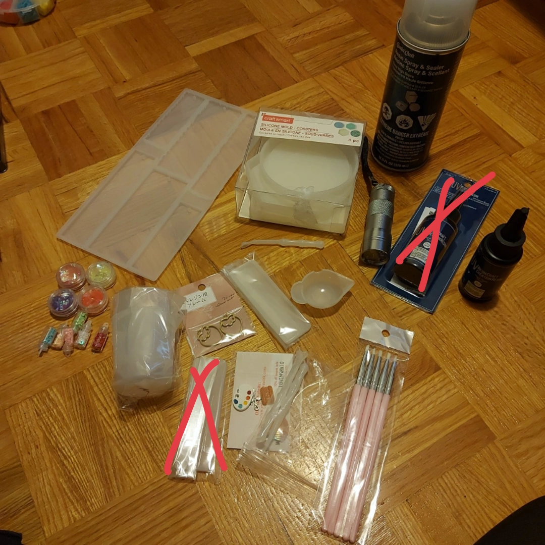 1000+Coming to terms with the fact I'll never pick up this hobby again. Get started with resin casting. Includes resin (one new bottle(sold), other almost all used), molds for keychains(one sold), book marks, glitters, tools, and a small uv flash light (no batteries), can of resin spray and sealer (basically full). please take it all for $15. Exact amount in cash please. Pick up at Pape Station.