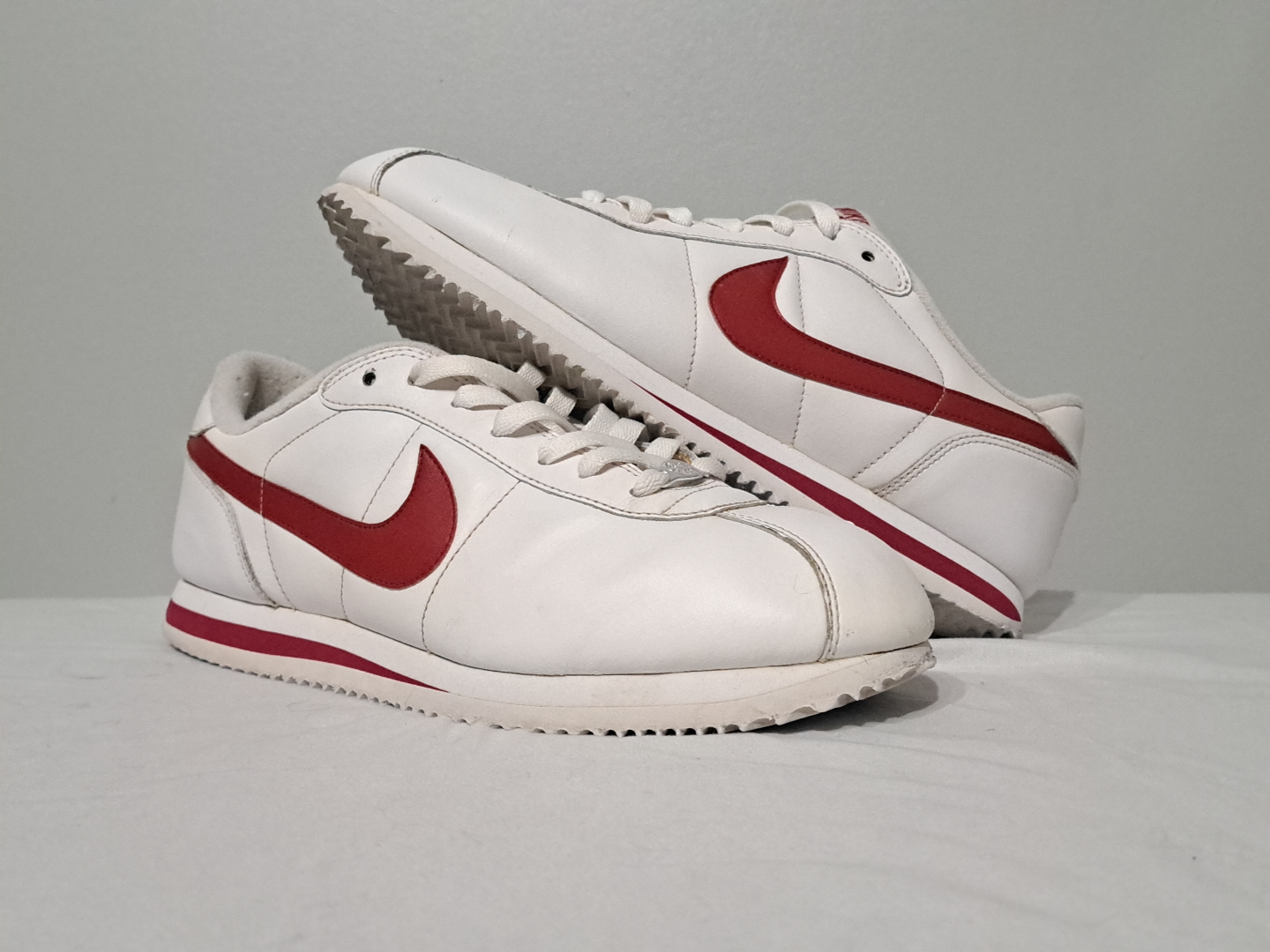 Buy & SellNike Cortez Leather Sneakers Sz 9.5 MensNike Cortez Leather Sneakers Sz 9.5 Mens$40White leather sneakers with red swoosh and trim. Size US 9.5. Made in Vietnam.ConditionGoodSize9.5BrandnikeWHERE TO MEETCheck LocationView MapSELLERDCBlackfalds14811 reviews0 chats·0 favorites·46 views