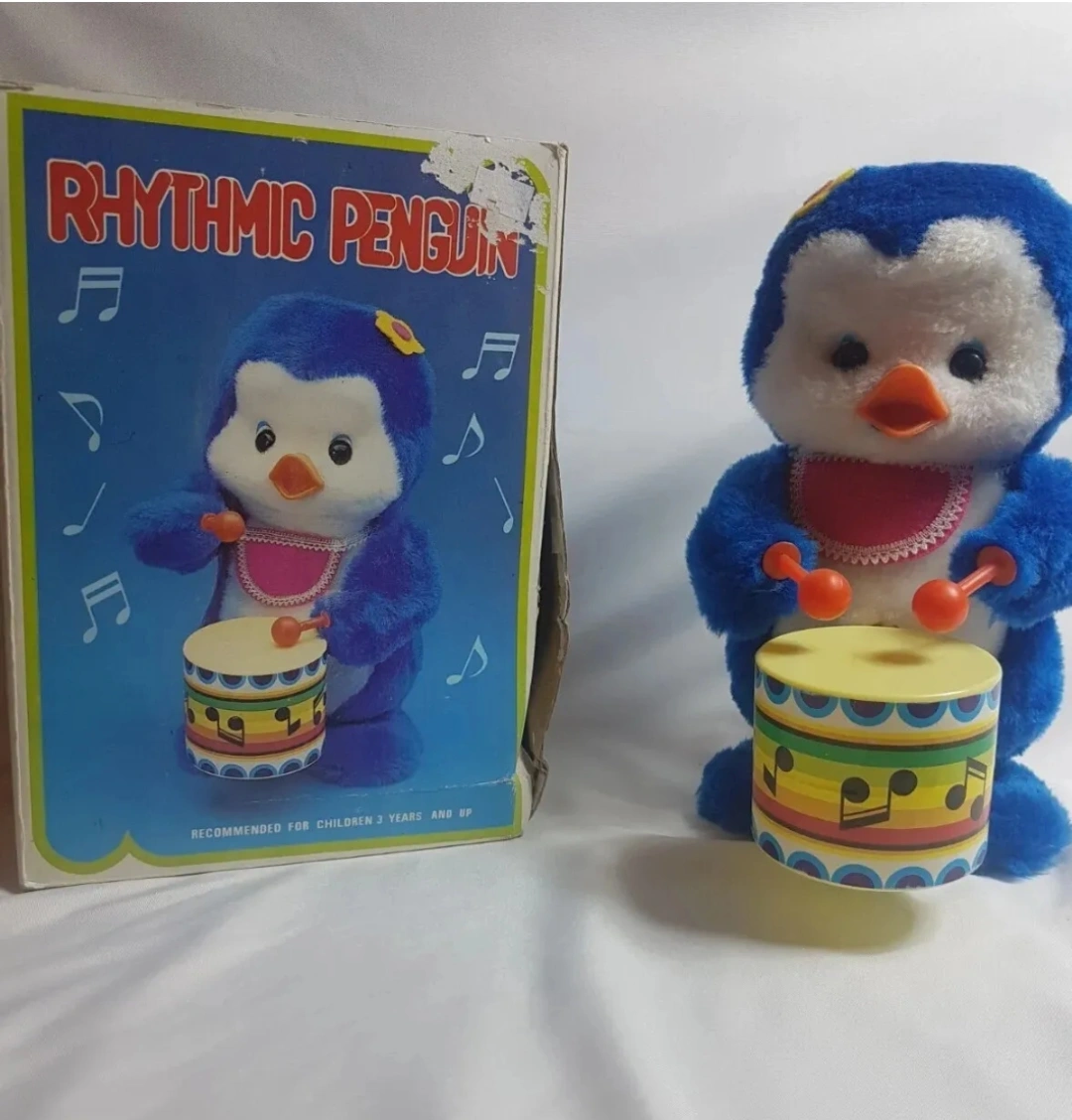 Rhythmic Penguin Toy Vintage chirps loud and bangs drum