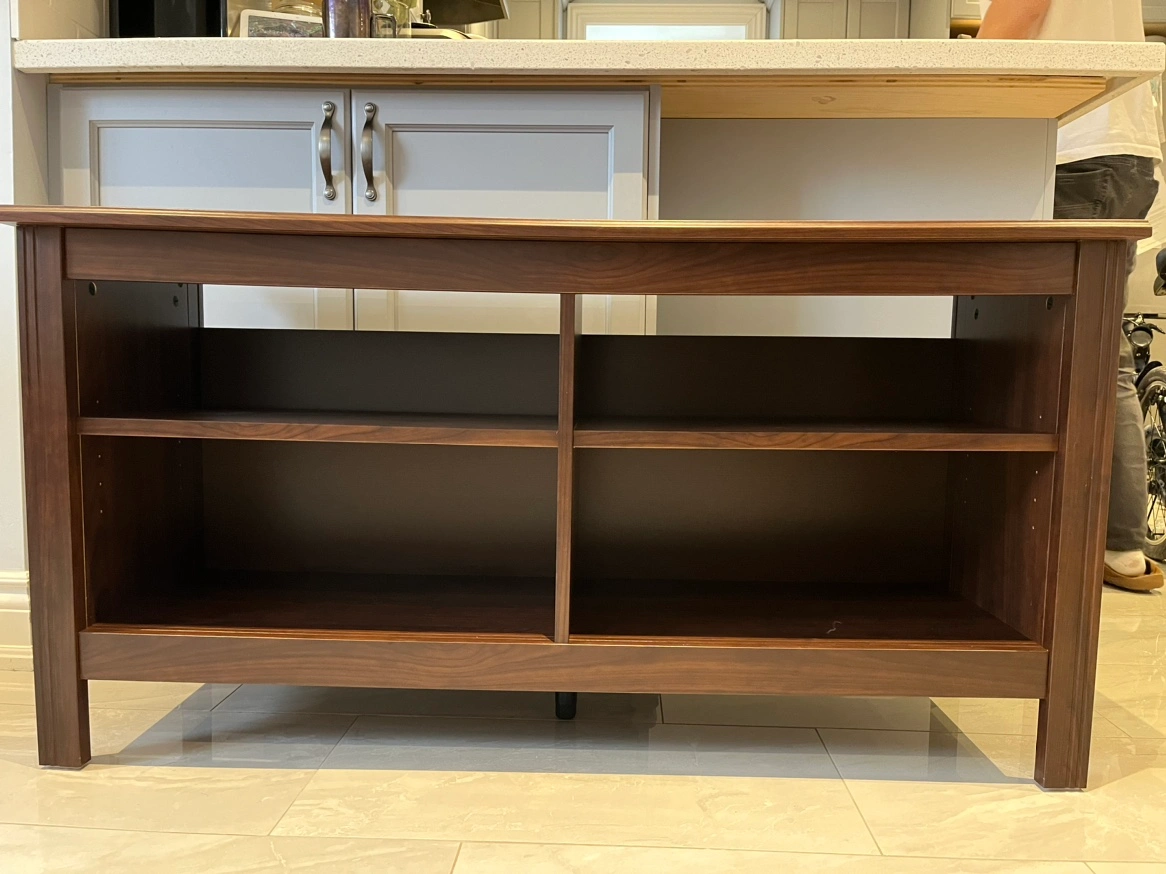 A great piece of furniture for a living room or bedroom. It has a shelf on each side for storage.