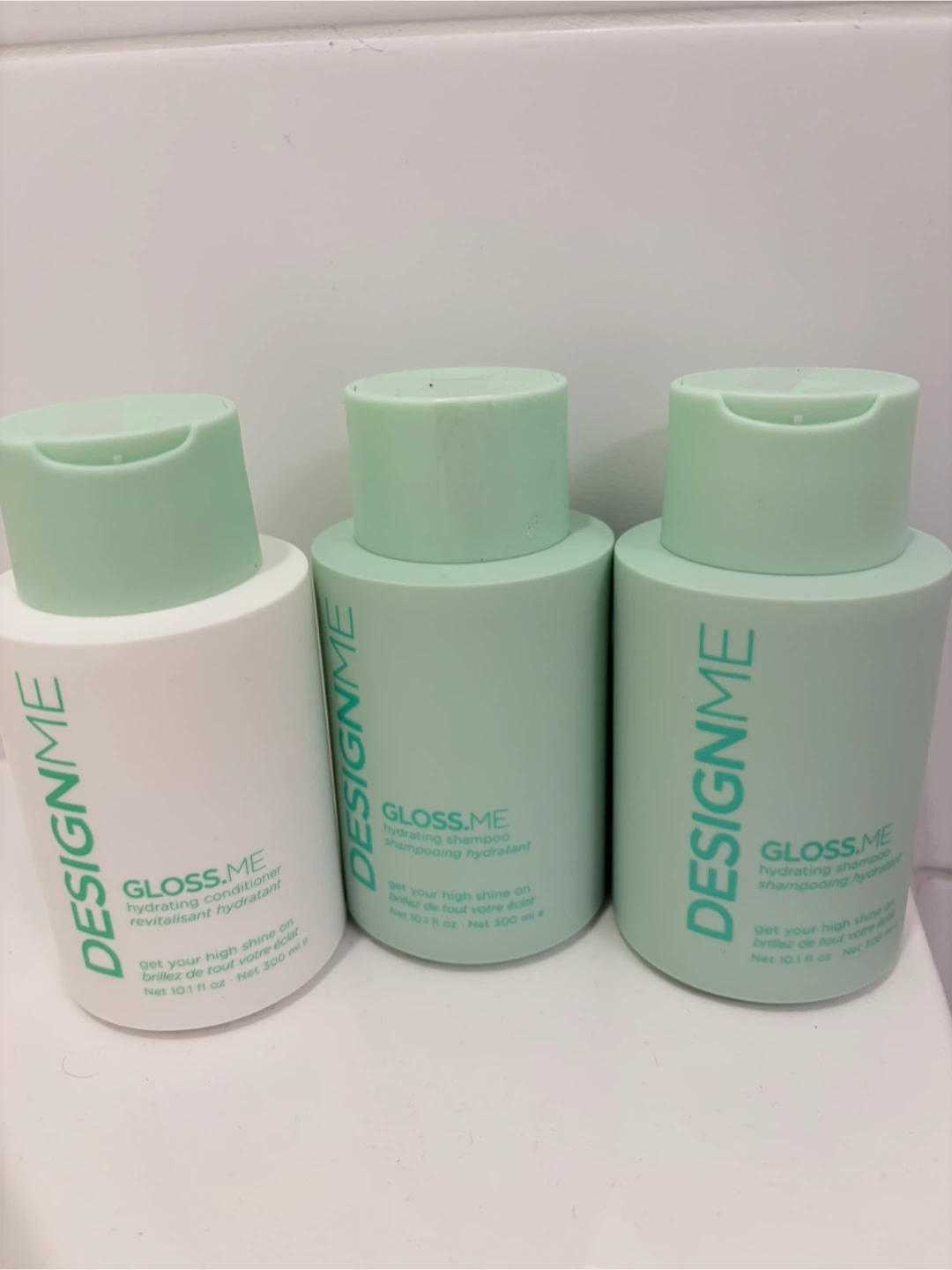 Brand new DESIGN.ME GLOSS.ME 2 hydrating shampoo bottles and 1 hydrating conditioner bottle.