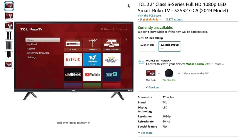 TCL 32" Class 3-Series Full HD 1080p LED Smart Roku TV - 32S327-CA