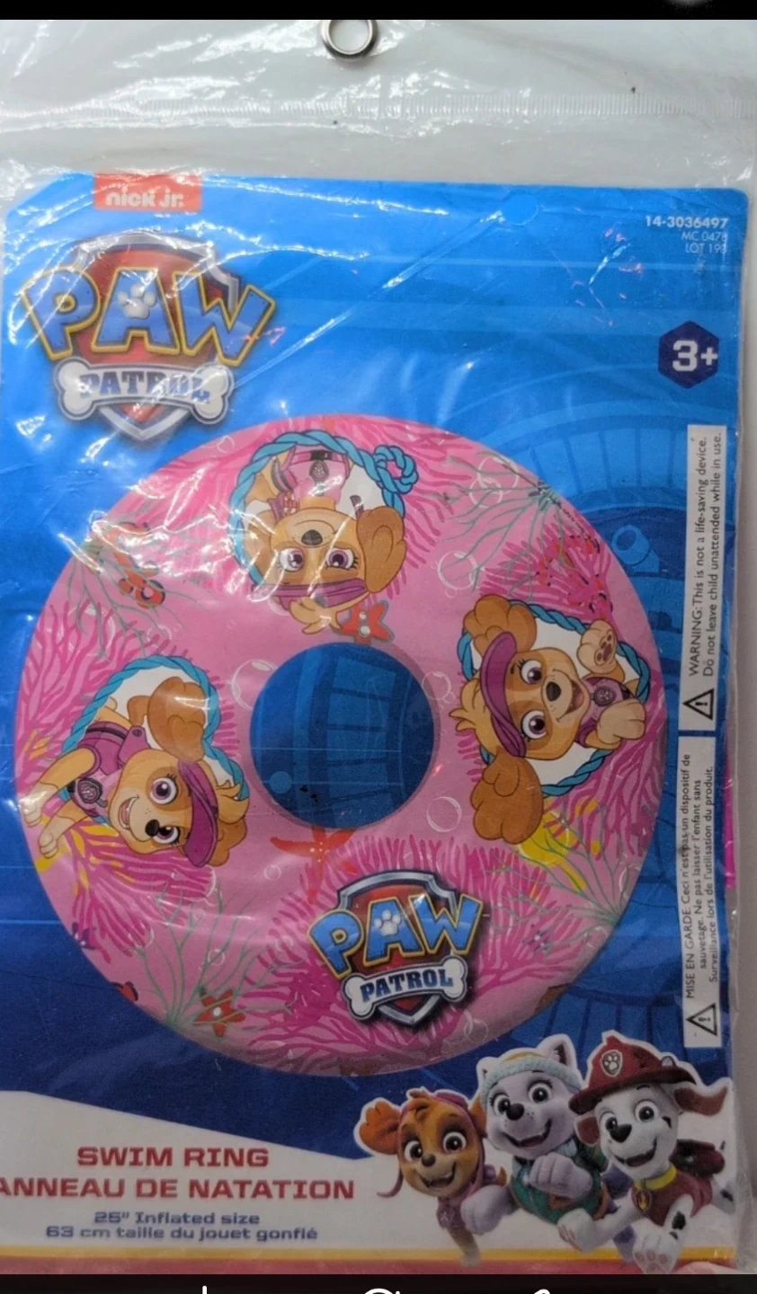 This Paw Patrol swim ring features Skye and Everest! It's 25 inches inflated. Suitable for water fun!