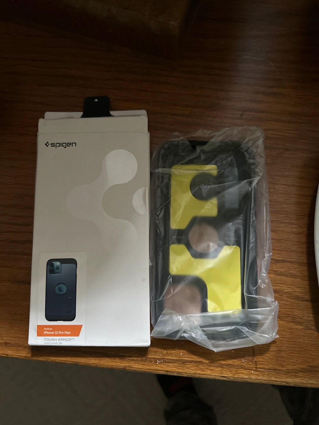 This is a Spigen Tough Armor phone case for the iPhone 12 Pro Max. It is in new condition and has never been used. It comes with the original packaging.