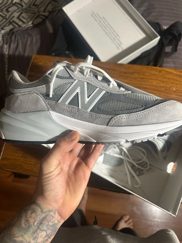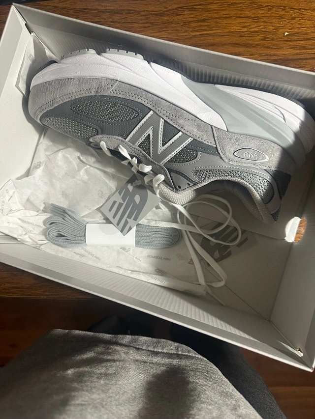 These are new New Balance M990GL6 shoes in a men's size 10 (2E width), perfect for athletic or casual wear. They come in the original box with an extra set of laces. Will trade for Pokemon cards.