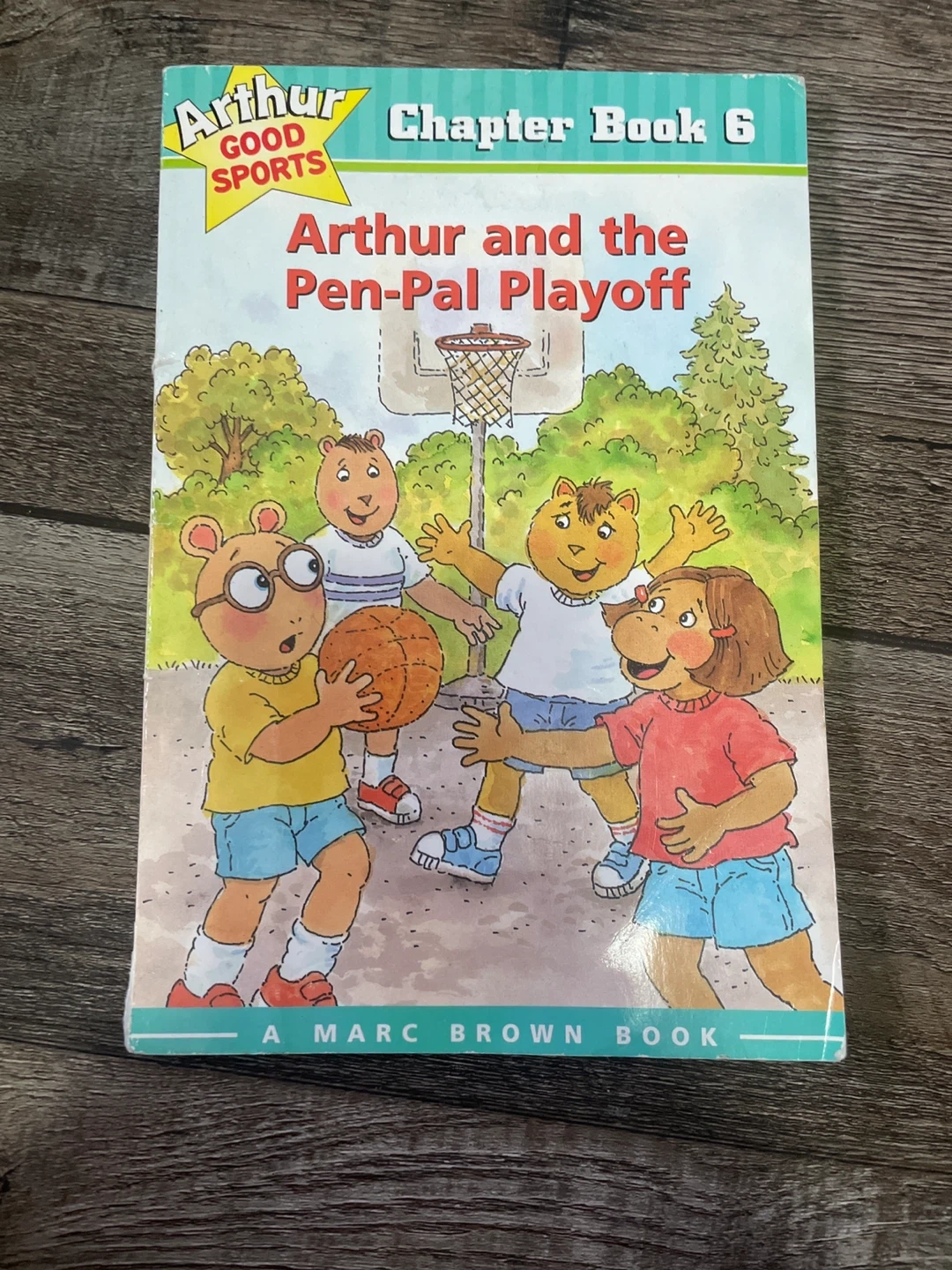 Arthur Good Sports Chapter Book 6 features Arthur and the Pen-Pal Playoff. It's a book adapted from the works of Marc Brown. This story is about a basketball game.