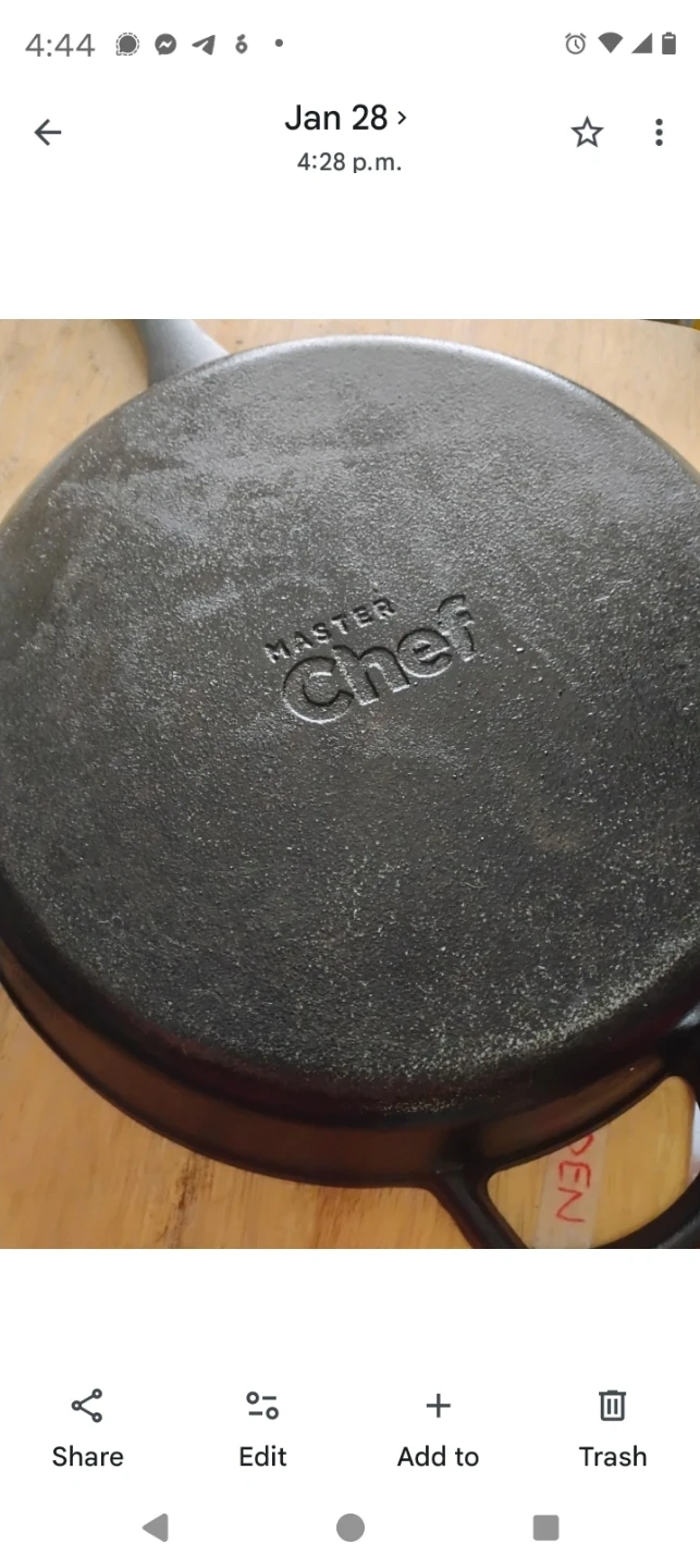 Buy & SellMaster Chef Cast Iron Skillet - 12 InchMaster Chef Cast Iron Skillet - 12 Inch$28MasterChef cast iron pan 12 in in diameter, 13 with the spouts Entire length of the pan with the handle is 20 in WHERE TO MEETDowntown Kitchener BIAView MapSELLERBekDowntown Kitchener53956 reviews0 chats·0 favorites·11 viewsSEND CHAT TO SELLERHi Bek! I’m interested in your listing.Hi Bek! I’m interested in your listing.Get the Karrot app to chatSign In to chat