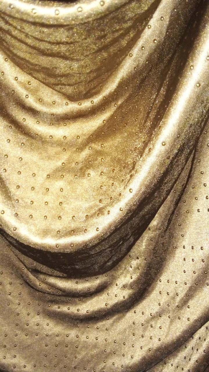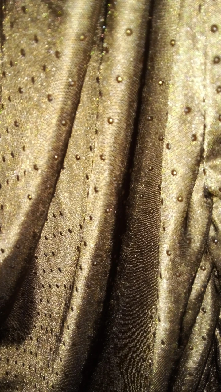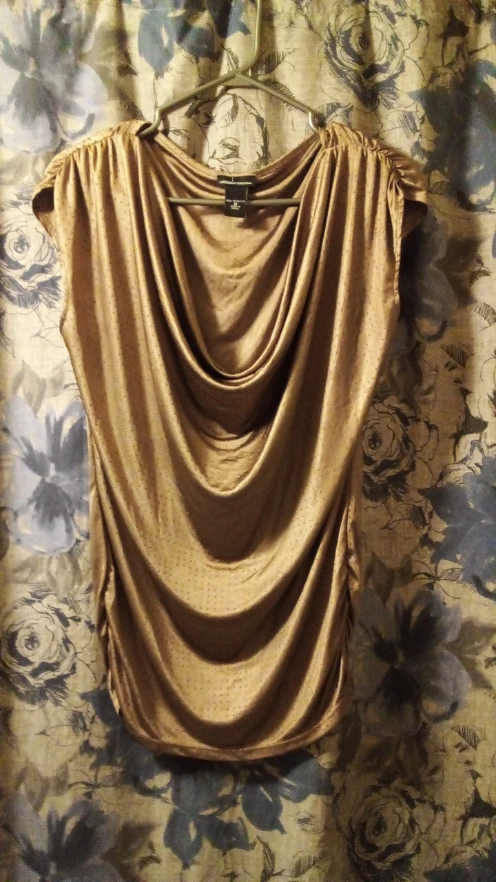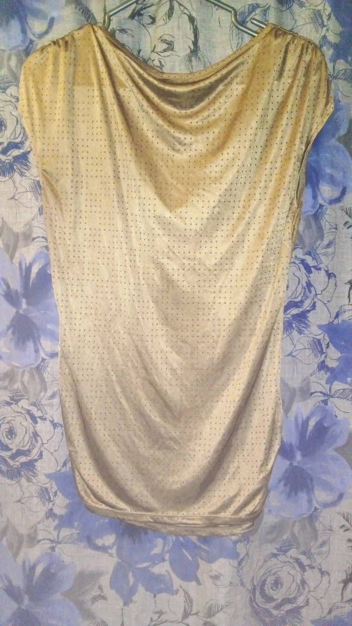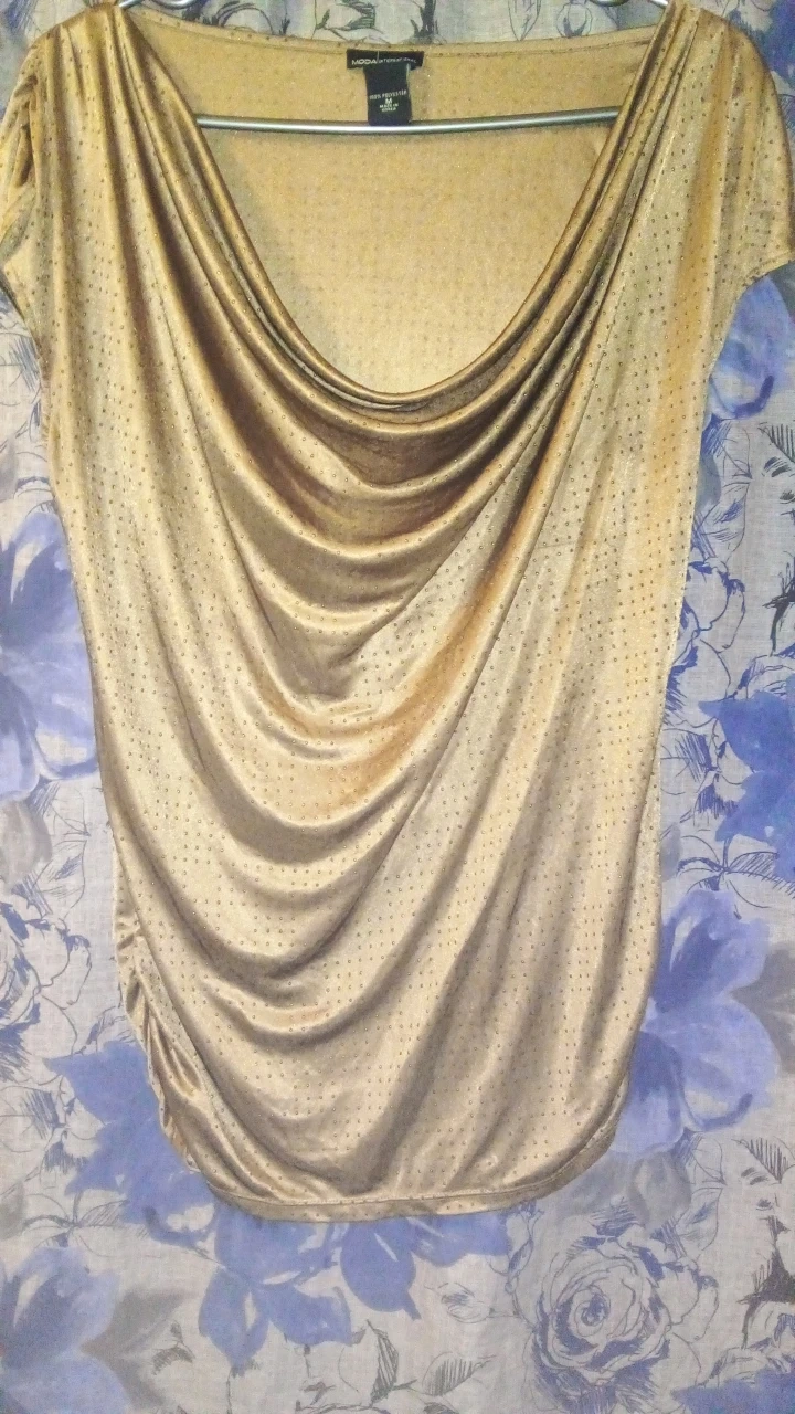 Beautiful size M silky gold dress shirt. Ford beautifully with a décoltée neckline and side pleats inside and upwards. By "MODA A TOUR effel. (French brand)