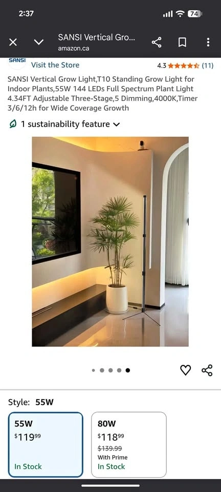 Brand new SANSI T10 standing grow light for indoor plants. Features full spectrum LED, adjustable height up to 4.34FT, 5 dimming levels, 4000K, and a timer (3/6/12h) for wide coverage growth. Asking $70. Still in box.