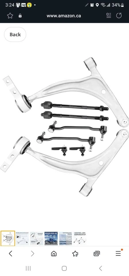 Kit Includes : 1x Front Lower Right Control Arm w/ Ball Joint, 1x Front Lower Left Control Arm w/ Ball Joint, 1x Front Left Sway Bar End Link, 1x Front Right Sway Bar End Link, 2x Front Inner Tie Rod End, 2x Front Outer Tie Rod End.
