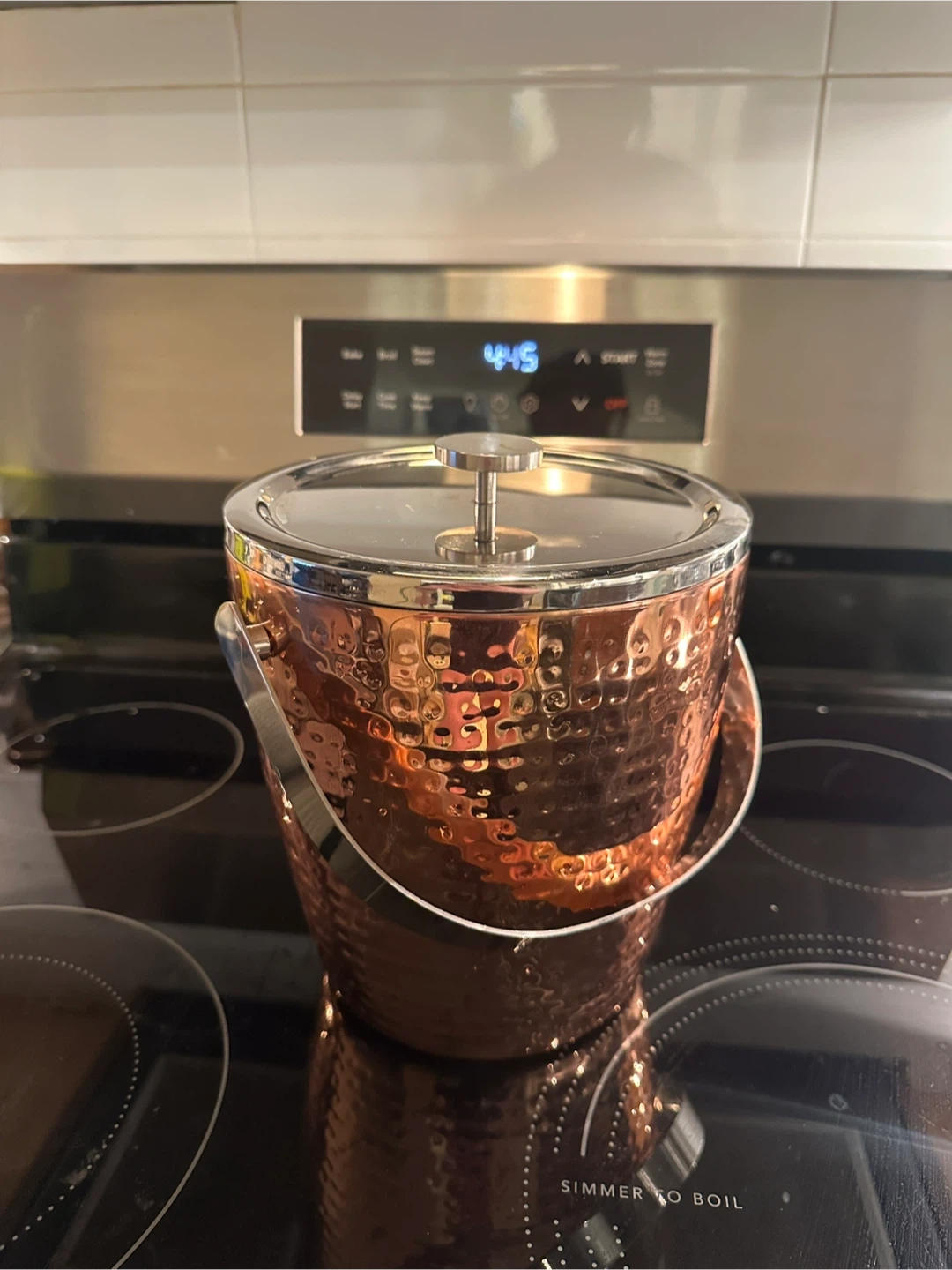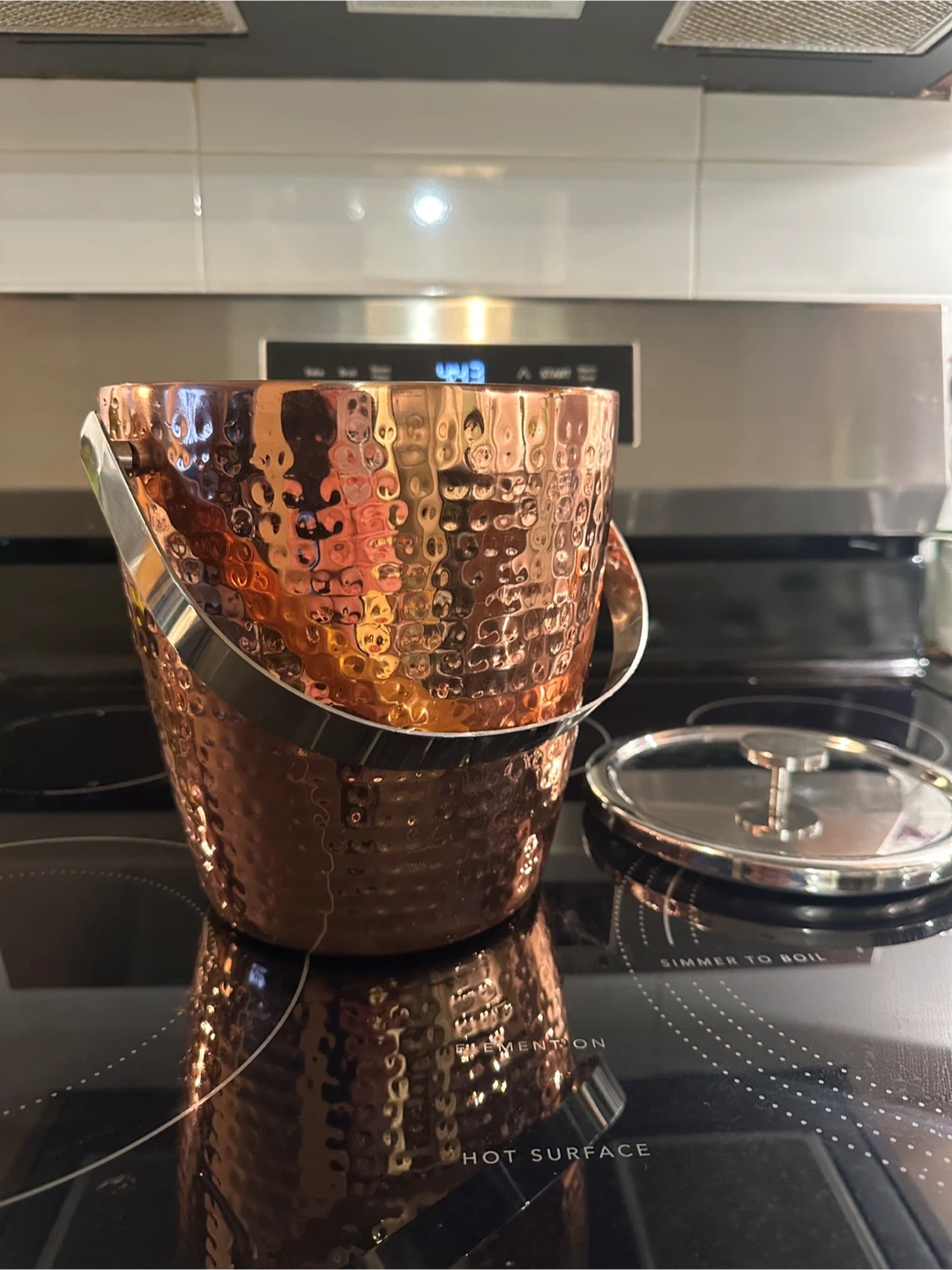 This ice bucket is made with a hammered copper finish and a stainless steel interior