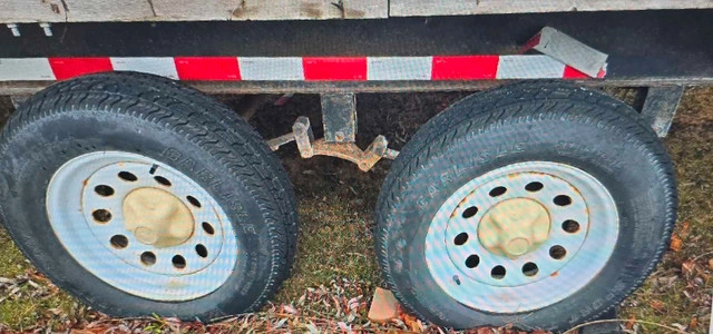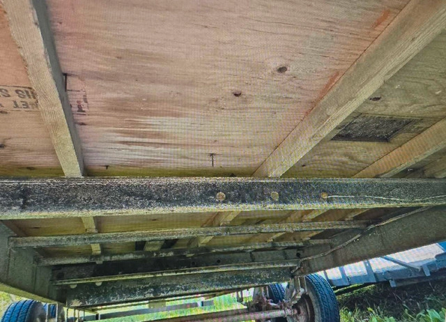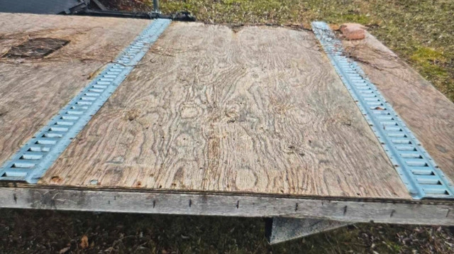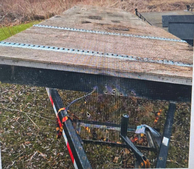 55This is a used 28 foot flatbed trailer, ready for heavy-duty hauling with its sturdy construction. 8 feet wide, 34" tall, 2 5/16 ball needed. Note that it's showing signs of wear on the deck but it's perfect for someone who values function over frills. I gutted a travel trailer to make this. Registered as home made and ownership in hand. Rewired the entire thing. New led lights and trailer jack. I may re-top it with fresh plywood, but then the price will go up too. Used for towing 6-7 atvs up north with ease. Multiple tie down points and easy track as well. Trailer brakes work great as long as your vehicle has a controller. Tires are great as well (ST205/75r15). I will throw in the ramps for full asking price. Located in Caledon. No delivery, pick up with cash in hand! While it's not exactly a trailer fit for a debutante's ball, it's got character! Remember, if the ad's up, the trailer's available, so let's skip the 'Is this still available?' dance. For Sale By: Owner
