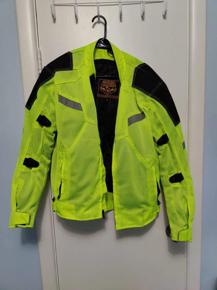 Milwaukee Leather Men’s Black and Green High-Viz Motorcycle Jacket with Armor – High Visibility Armored Mesh Racing Jacket - MIDIUM