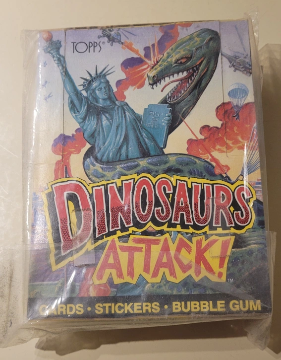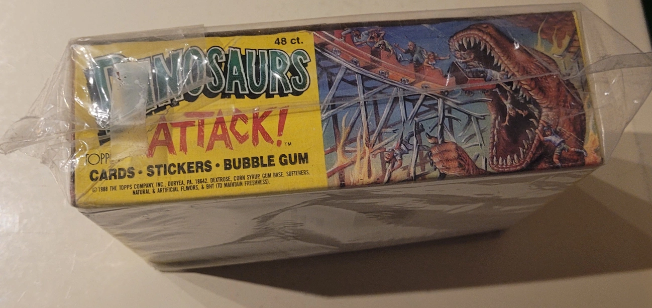 Full box of 48 sealed packs of cards/stickers Dinosaurs Attack cards.