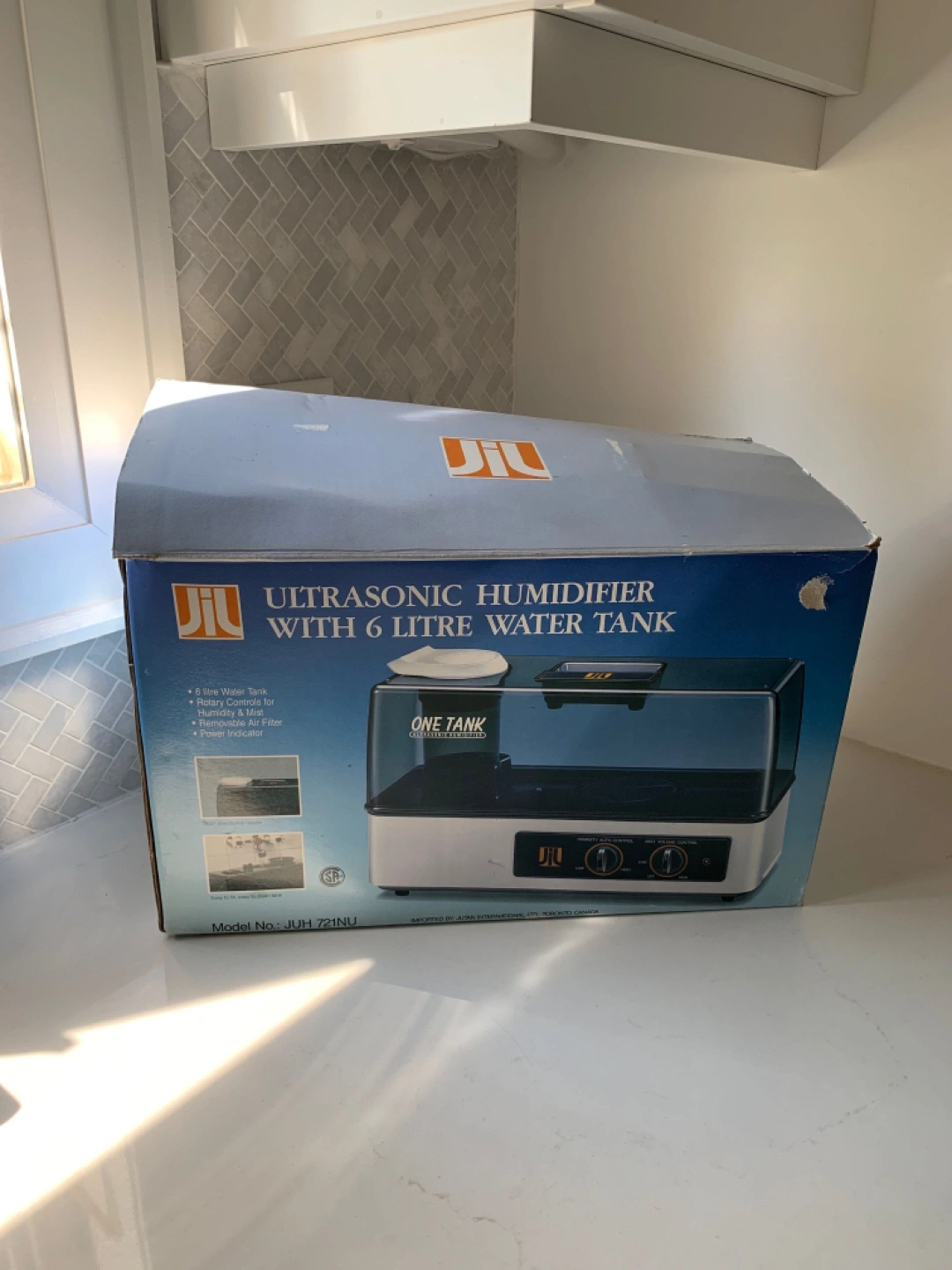 Ultrasonic humidifier with 6 L water tank Rotary controls for humidity and mist removable air filter