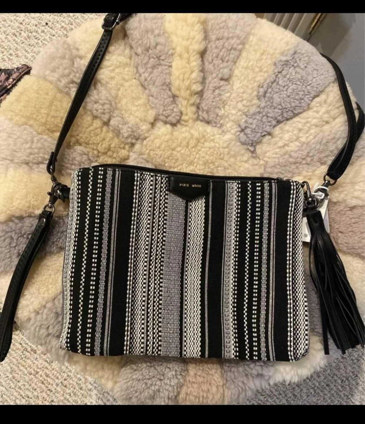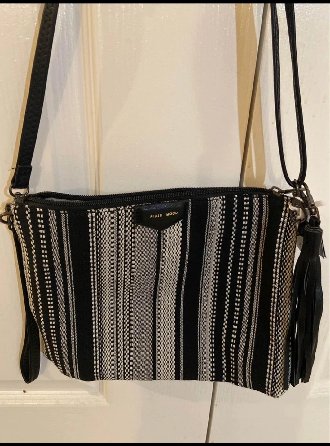 Brand new Pixie Mood Black and White Stripe Crossback/Clutch