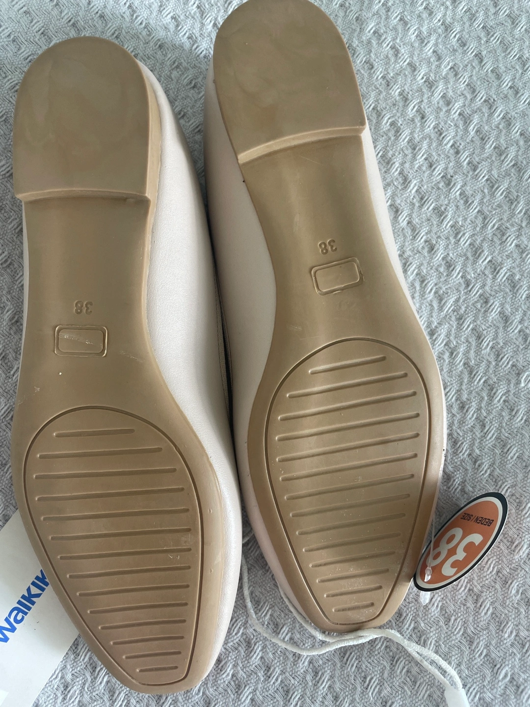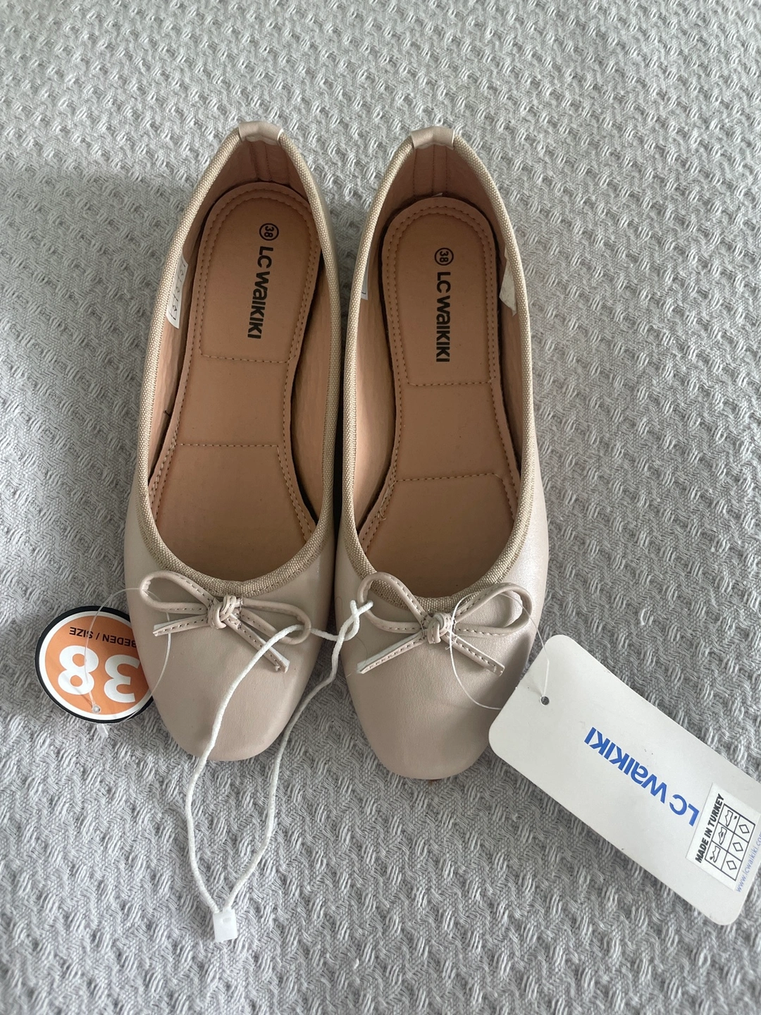 Beige ballet flats with a bow on the toe.new comfortable easy to combine