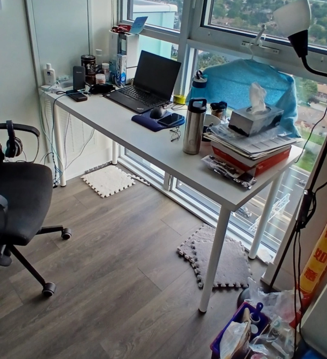Bought from IKEA. 80% New. Used for 1 year. In good condition, except a slight damage at the edge and some tiny scratches on the surface (as indicated in the picture). You'll need to assemble the legs to the tabletop by yourself.