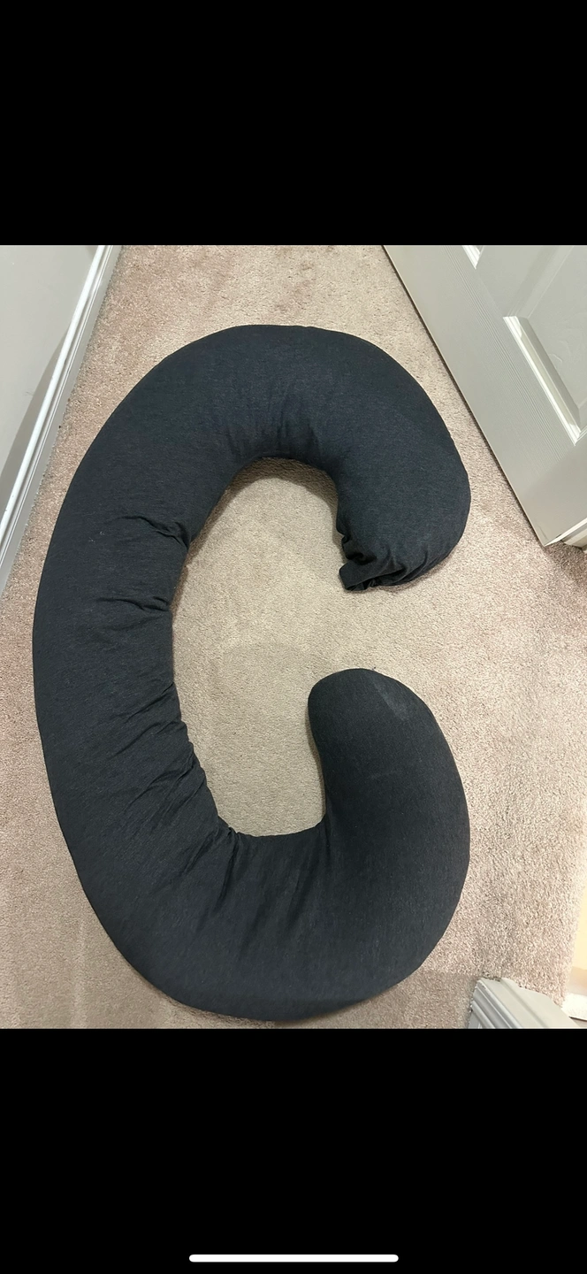 Body, pregnancy pillow. Comes with grey cover and is suitable for pregnant women or anyone who enjoys sleeping on their side.