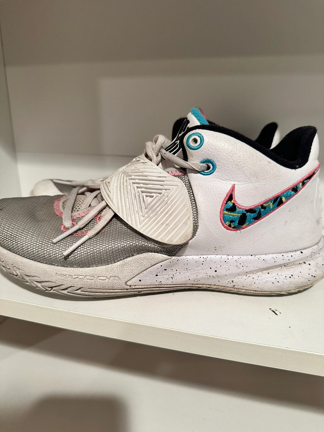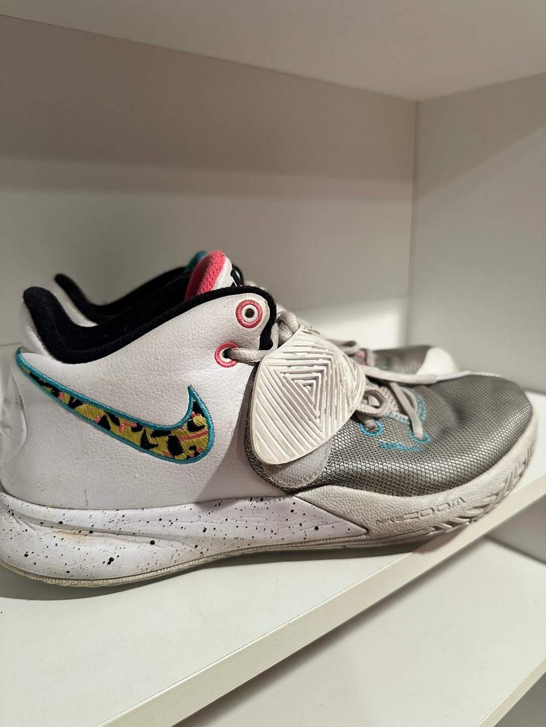 Selling a pair of Nike Kyrie Flytrap 3 'South Beach' basketball shoes in size 8.5 Men. Purchased from Nike and only worn for volleyball, so they’re in pretty clean condition.
