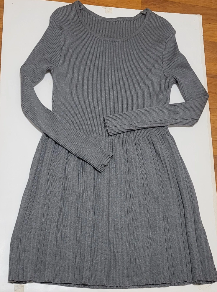 Brand new grey knitted pleaded long sleeve mini dress. It is a simple and classic style that can be dressed up or down.